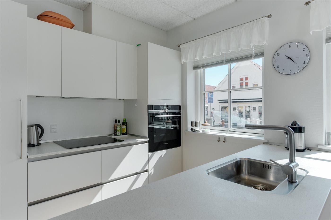 De keuken is uitgerust met koelkast Er is 4 inductiekookplaten, heteluchtoven en vaatwasser.