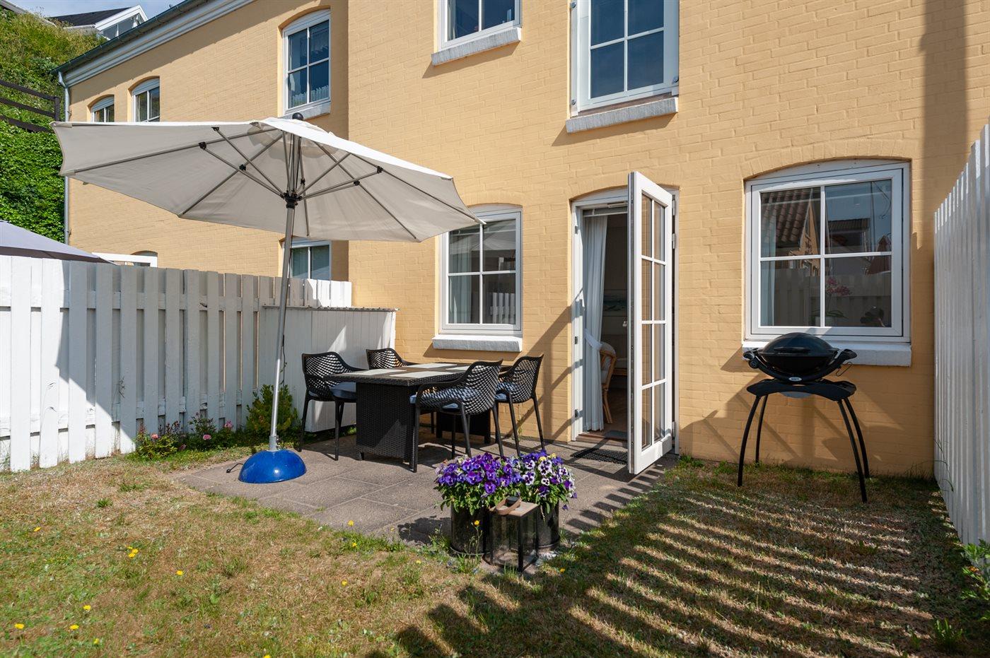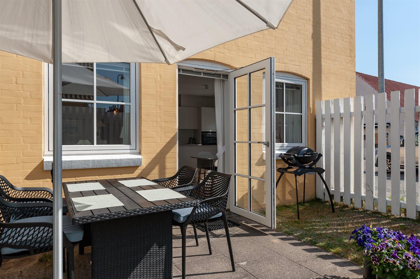 Modern vakantieappartement in Lønstrup met tuin, terras, dichtbij zee en winkels, ideaal voor een ontspannen verblijf.