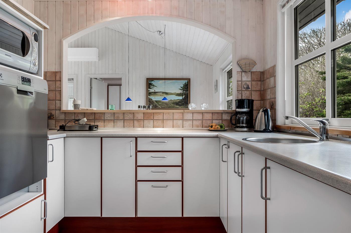 De keuken is uitgerust met koelkast Er zijn 4 keramische kookplaten, heteluchtoven en vaatwasser.