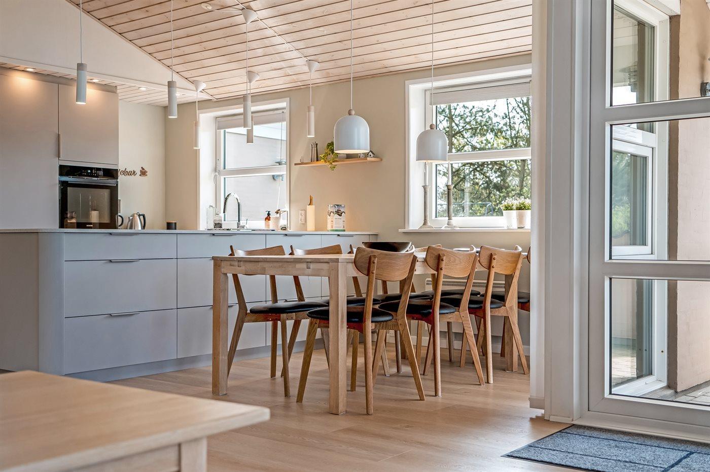 De keuken is uitgerust met koelkast Er is 4 inductiekookplaten, mini-oven, heteluchtoven en vaatwasser.