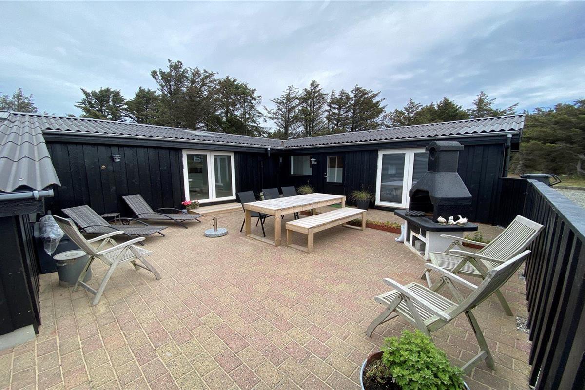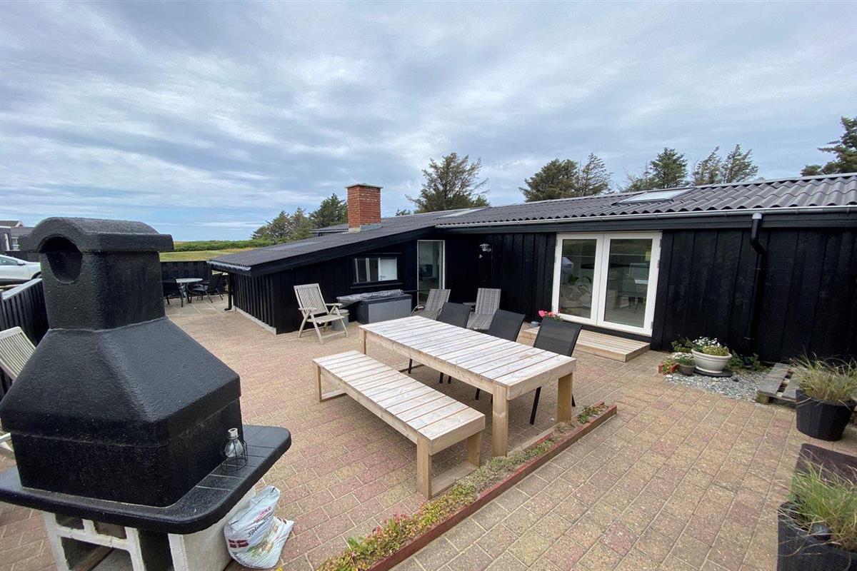 De vakantiewoning is gelegen op een 2130 m² groot natuural grond. Afstand tot de zee 340 m. Dichtstbijzijnde winkel 1100 m. Er is een golfbaan op een afstand van 6000 m. Bij de vakantiewoning hoort 70 m² terras. Waarvan in totaal 55 m² beschut terras. Barbecue. Parkeerplaats bij het huis.