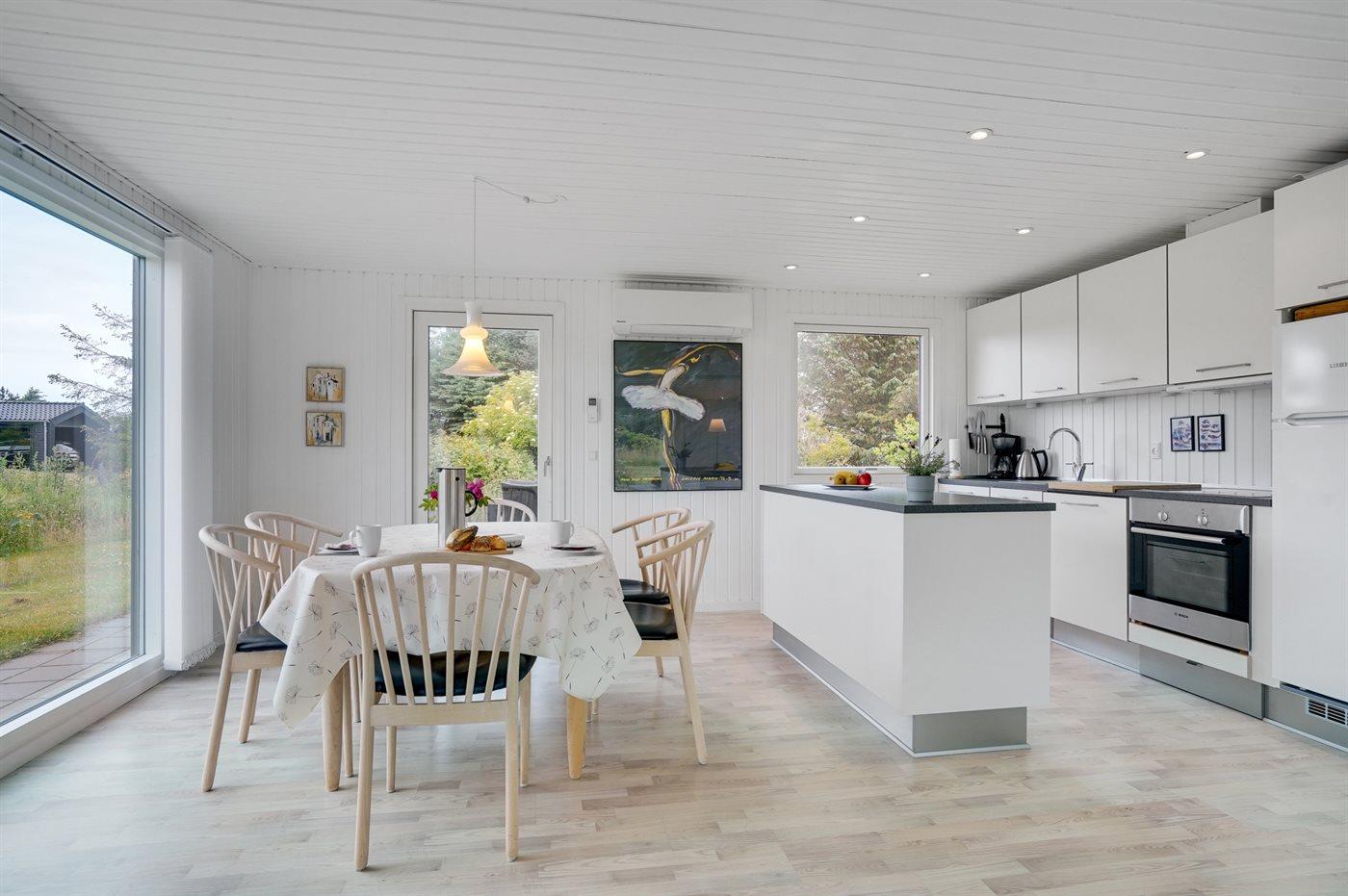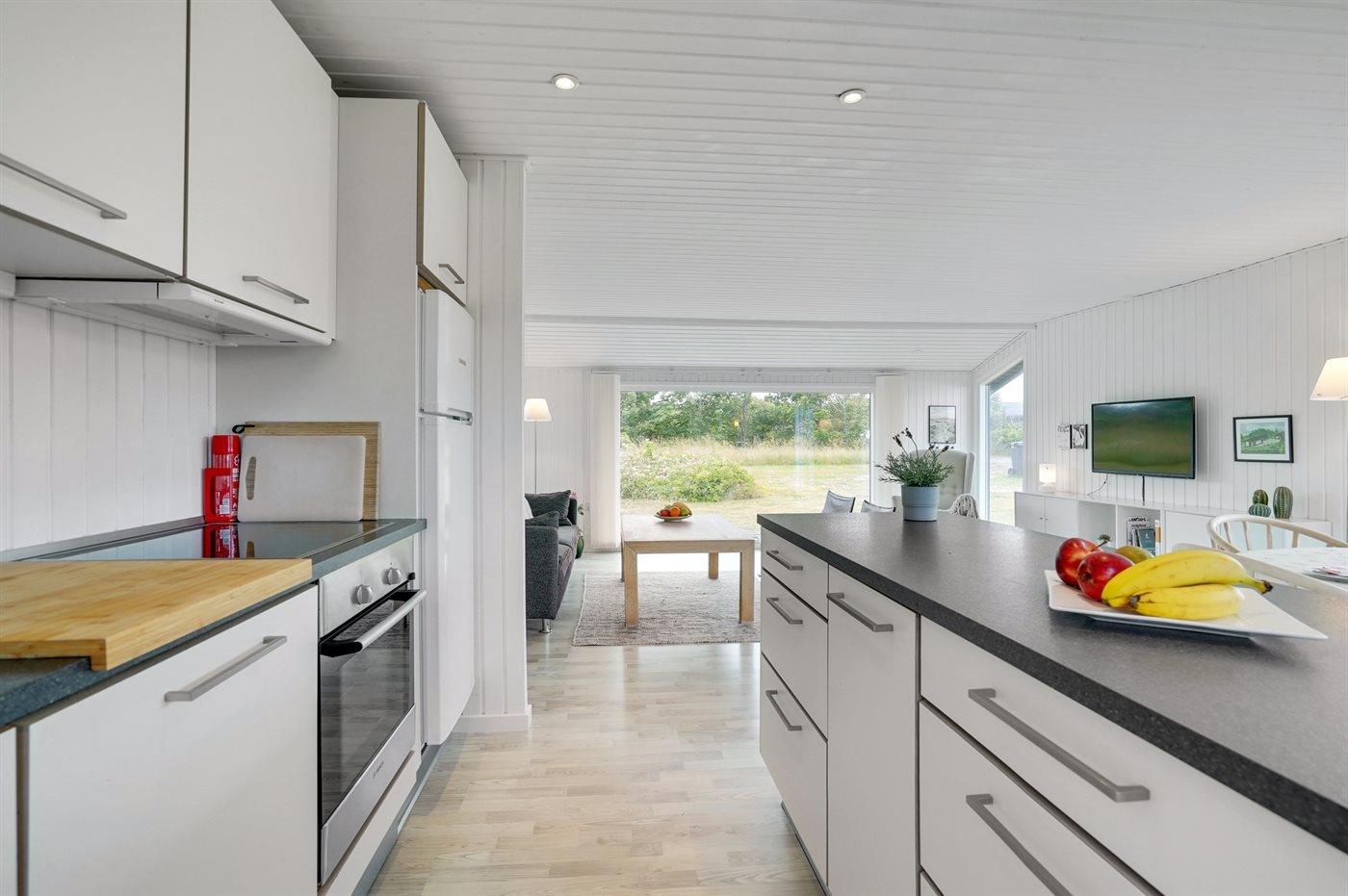 De keuken is uitgerust met koelkast Er is 4 inductiekookplaten, heteluchtoven, magnetron en vaatwasser.