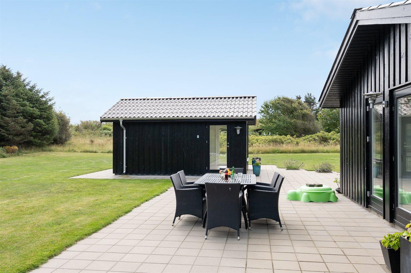 De vakantiewoning is gelegen op een 2250 m² groot natuural grond. Afstand tot de zee 800 m. Dichtstbijzijnde winkel 500 m. Bij de vakantiewoning hoort 75 m² terras. Gereedschapsruimte. Zandbak. Barbecue. Parkeerplaats bij het huis.