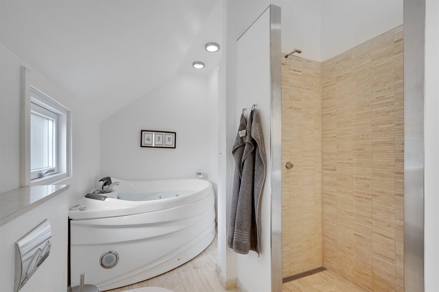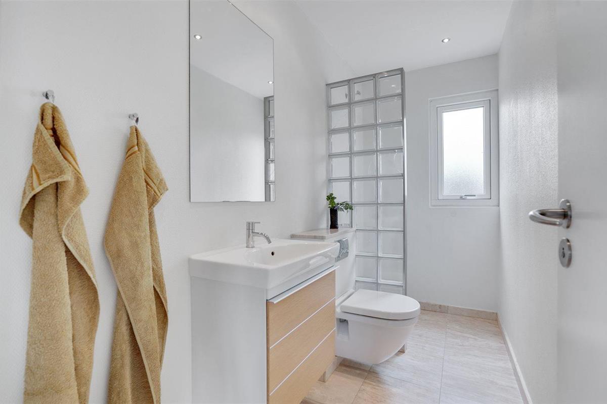 Er is 2 badkamers met douchehok en 2 toiletten. Er is vloerverwarming in 2 van de badkamers.
