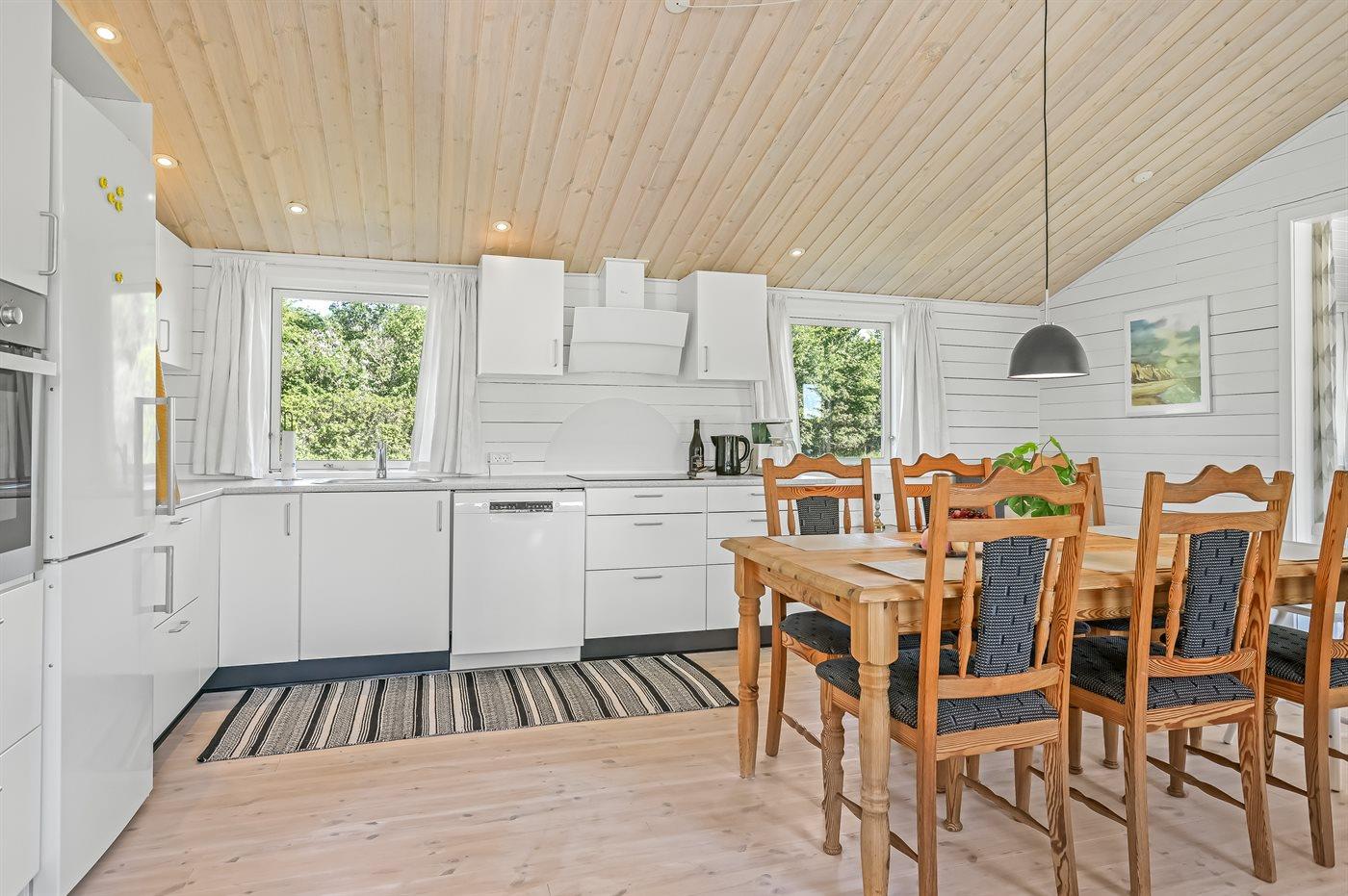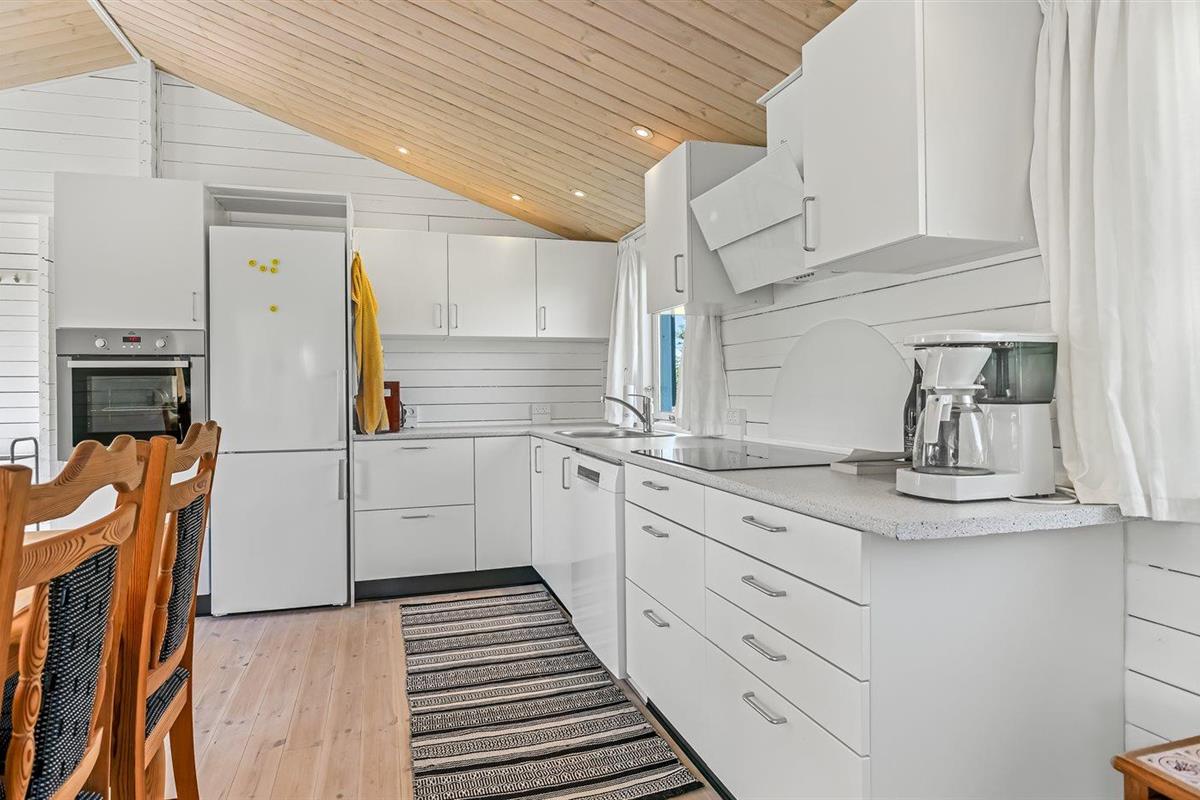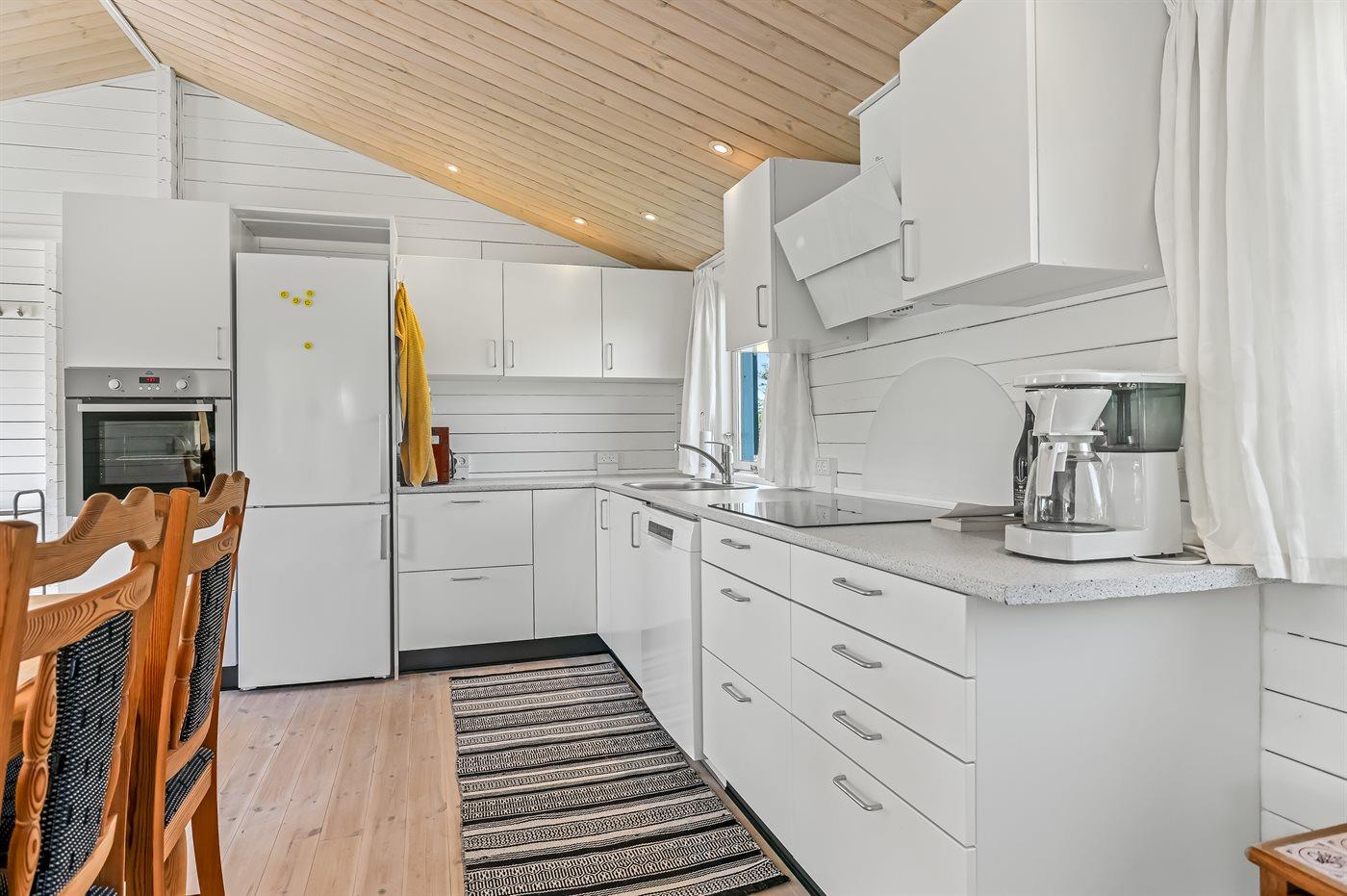 De keuken is uitgerust met koelkast Er is 4 inductiekookplaten, heteluchtoven, magnetron en vaatwasser.