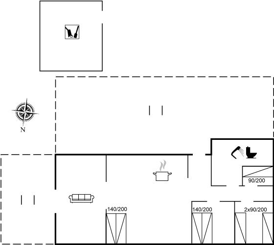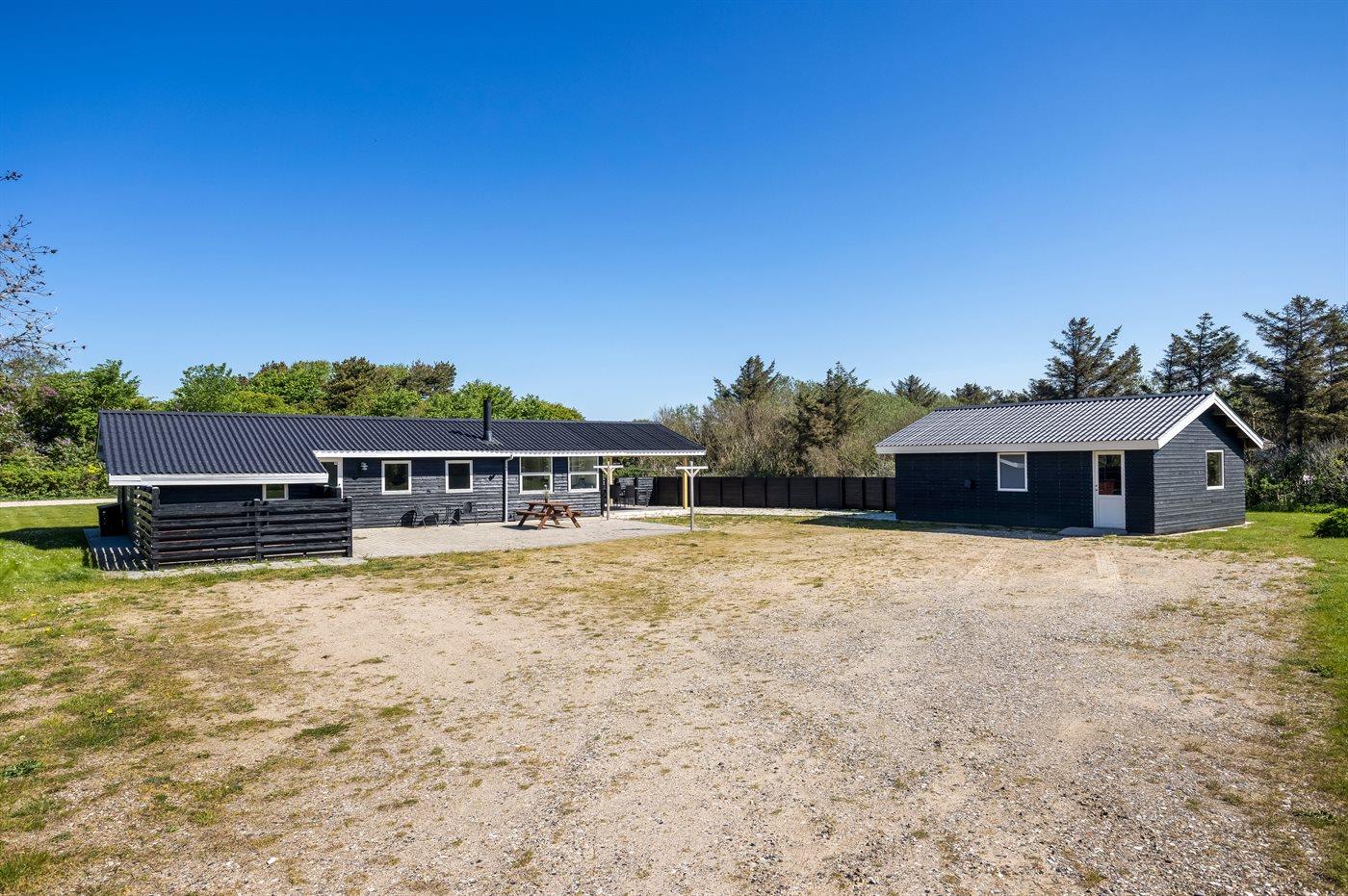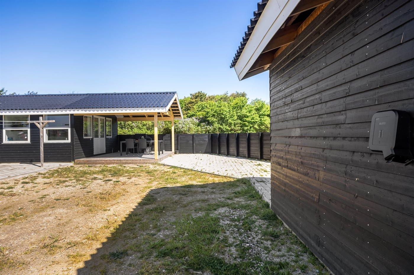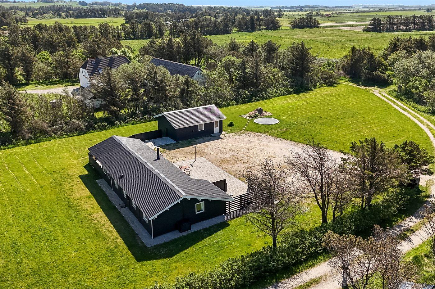De vakantiewoning is gelegen op een 2500 m² groot natuural grond. Afstand tot de zee 500 m. Dichtstbijzijnde winkel 900 m. Het vakantiehuis heeft een gedeeltelijk omheind terras. Gereedschapsruimte. Trampoline. Barbecue. Het huis heeft een stopcontact voor het opladen van een elektrische auto. Met 9 kW-laadvermogen. Parkeerplaats bij het huis.