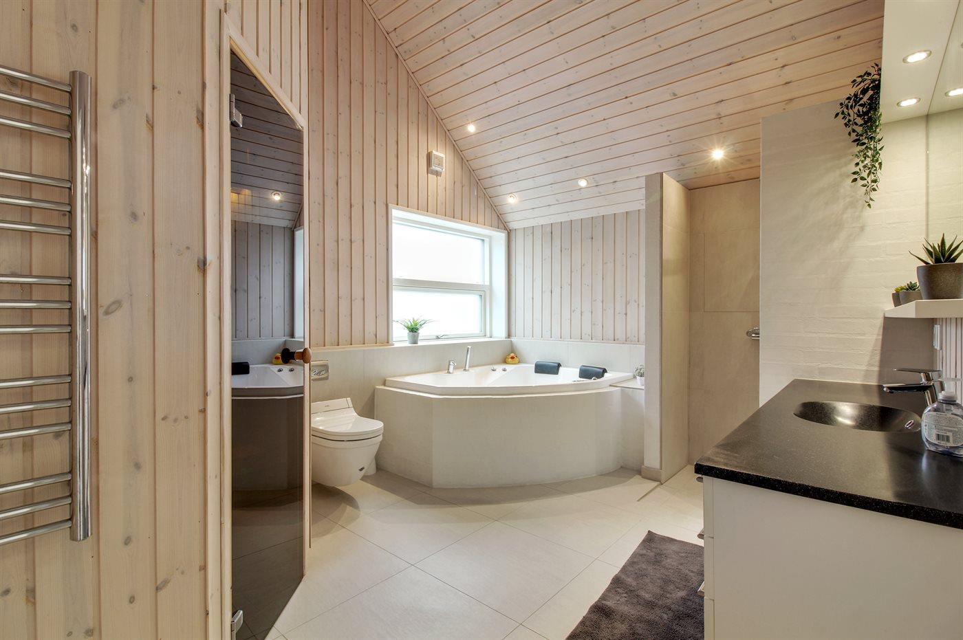 Er is 1 badkamer met douchehok en 1 toilet.. Er is vloerverwarming in 1 badkamer. De sauna biedt de gelegenheid tot ontspanning.
