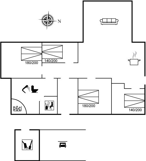 Er zijn in totaal 4 slaapkamers. De slaapplaatsen zijn als volgt verdeeld: 8 slaapplaatsen in tweepersoonsbedden. 2 slaapplaatsen in slaapbanken (tweepersoons). 2 van deze slaapplaatsen bevinden zich in de open slaapzolder. Verder is kinderbed ter beschikking.