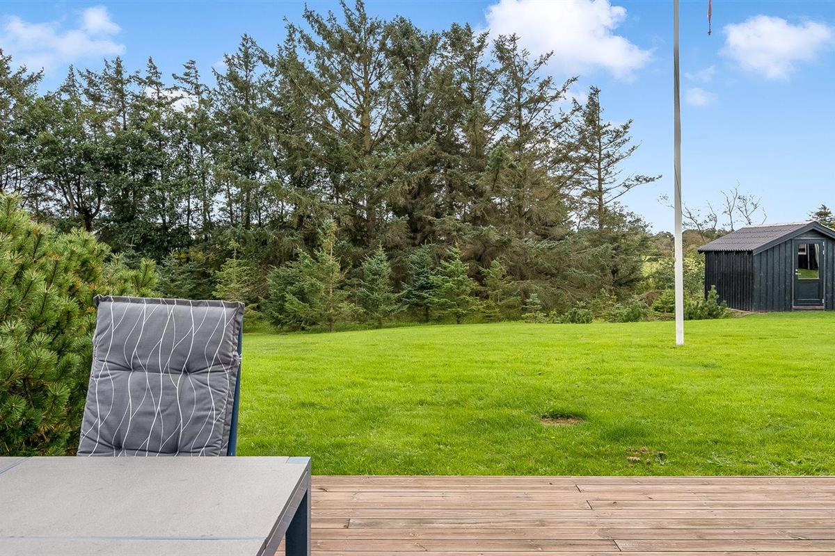 De vakantiewoning is gelegen op een 1200 m² groot aangelegde tuin. Afstand tot de zee 758 m. Dichtstbijzijnde winkel 300 m. Er is een golfbaan op een afstand van 3000 m. Bij de vakantiewoning hoort terras. Daarnaast is er een overdekt terras. Gereedschapsruimte. Afstand tot speelplaats 300 m. Barbecue. Het huis heeft een stopcontact voor het opladen van een elektrische auto. Oplaadstekker type 2. Met 11 kW-laadvermogen. Parkeerplaats bij het huis.