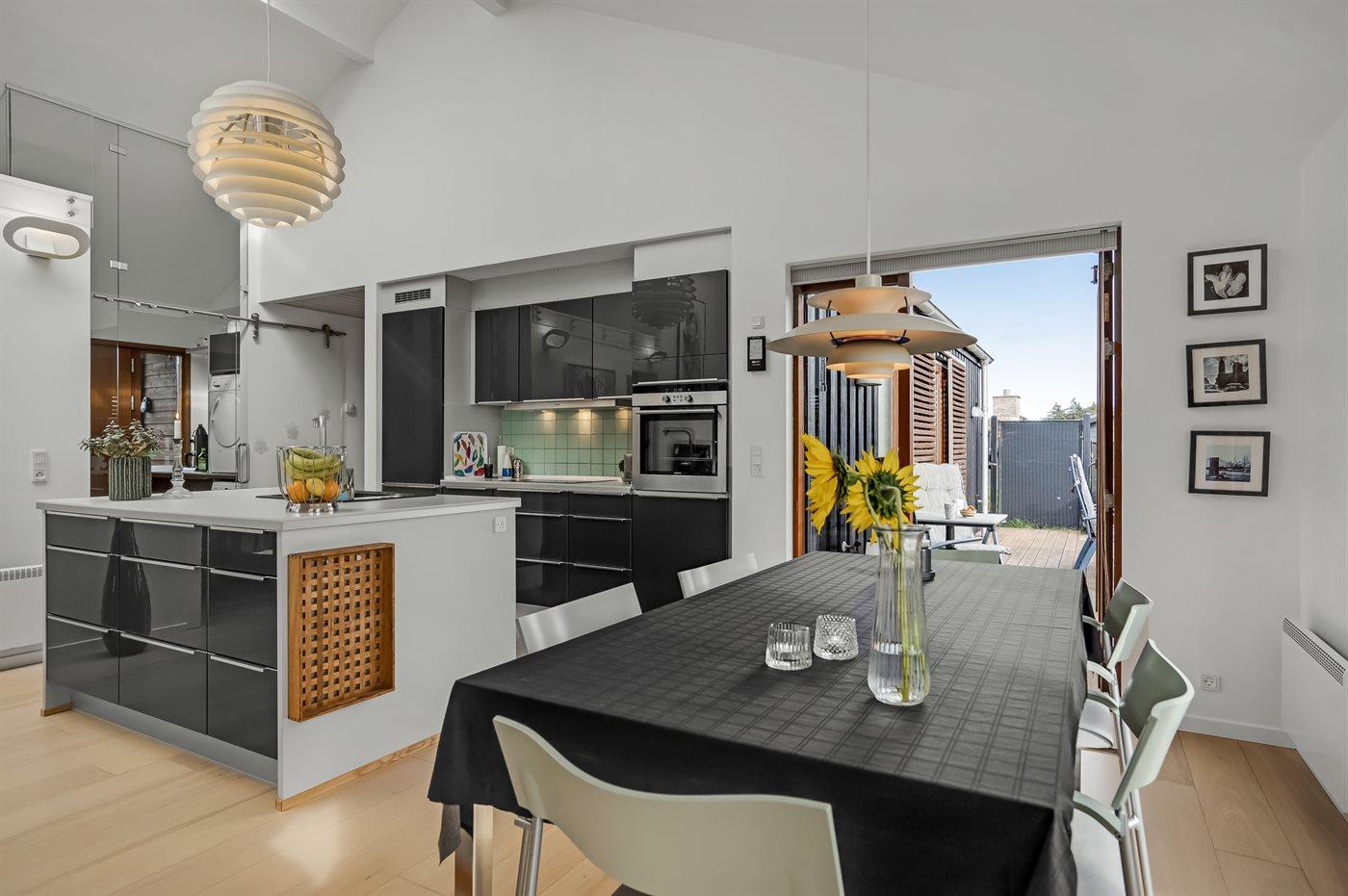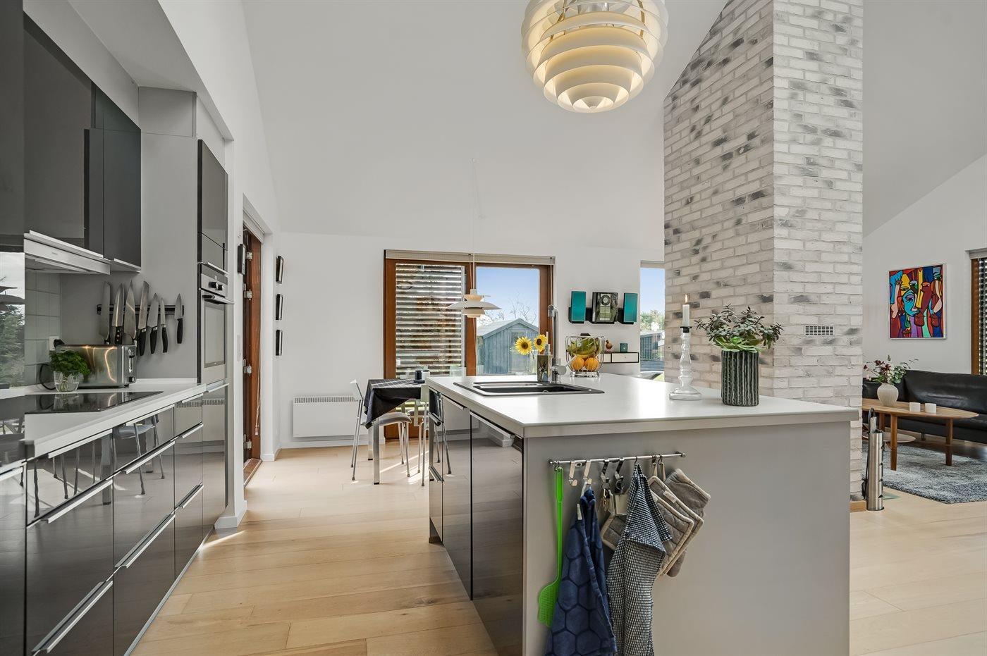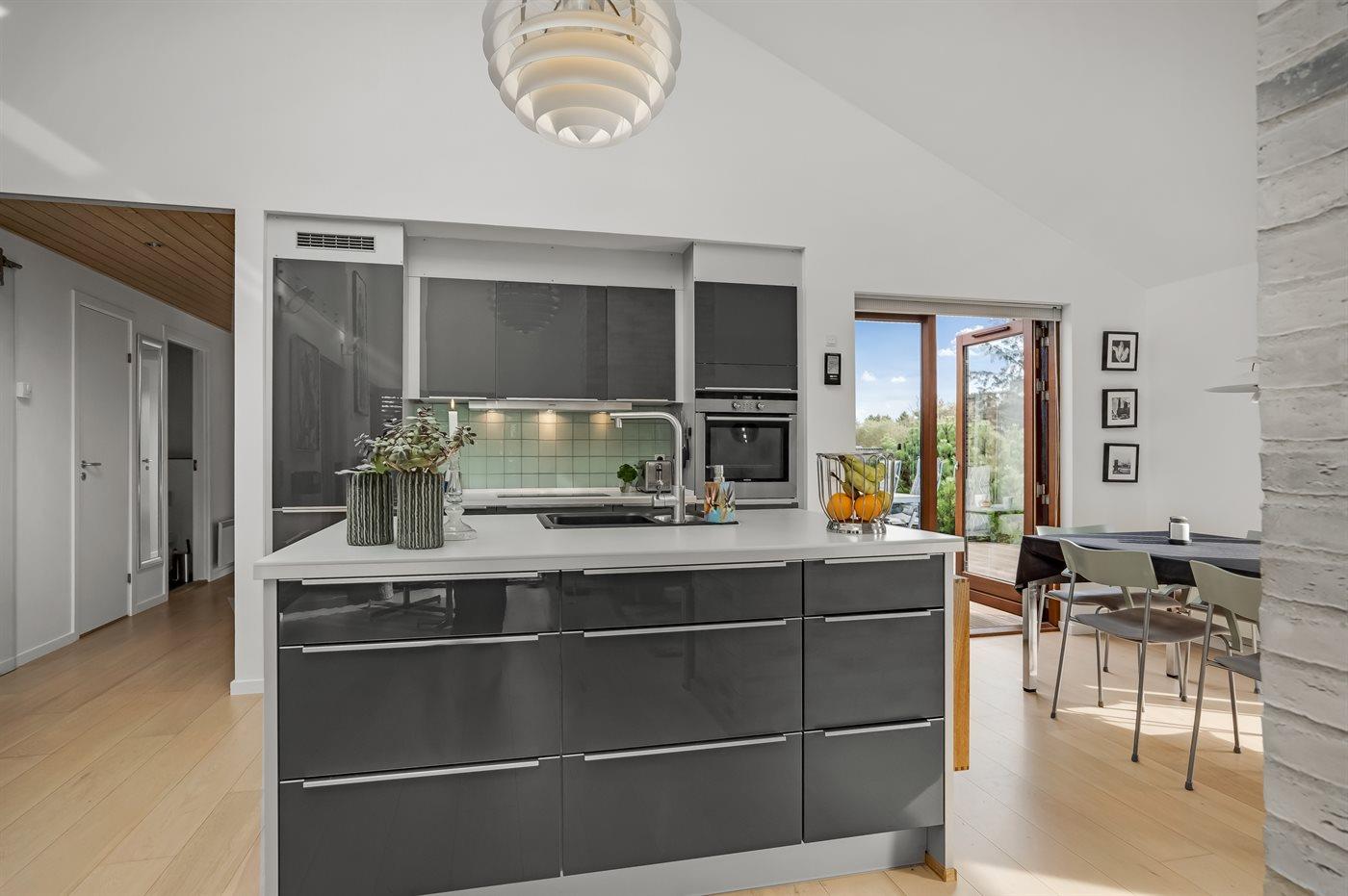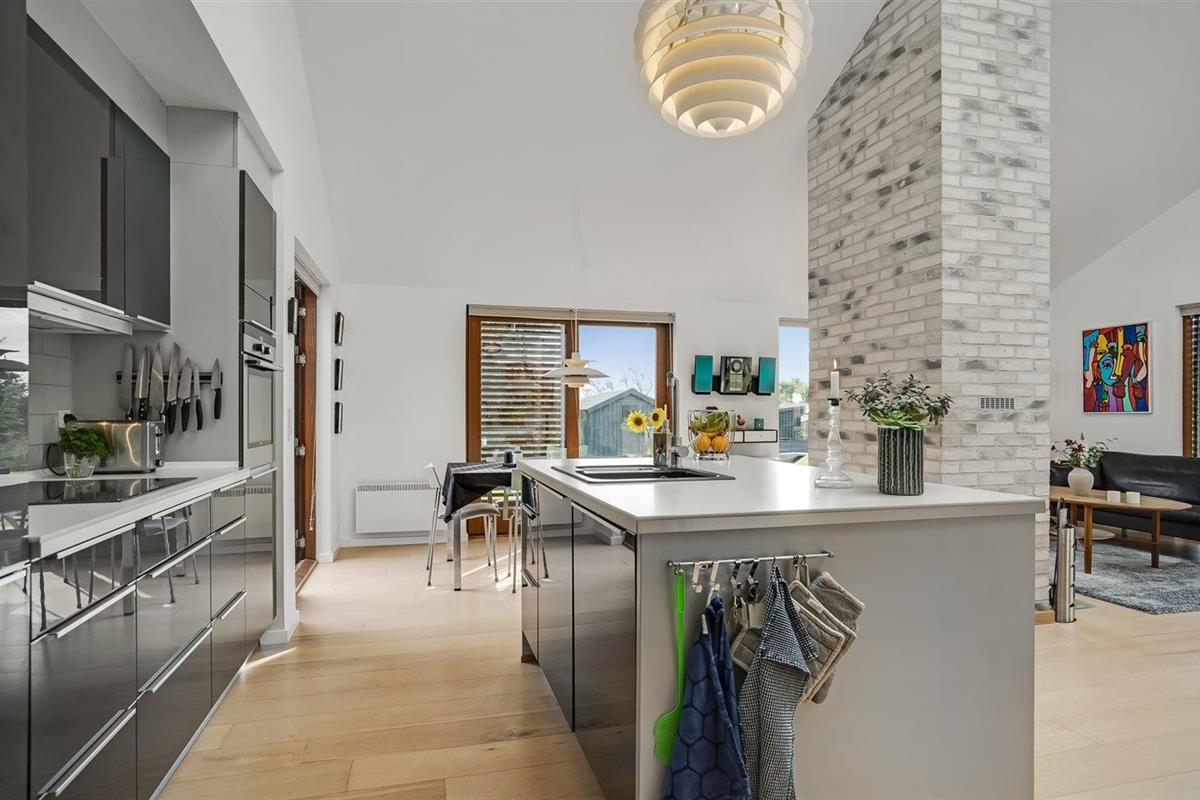De keuken is uitgerust met koelkast Er is 4 inductiekookplaten, heteluchtoven, magnetron en vaatwasser.