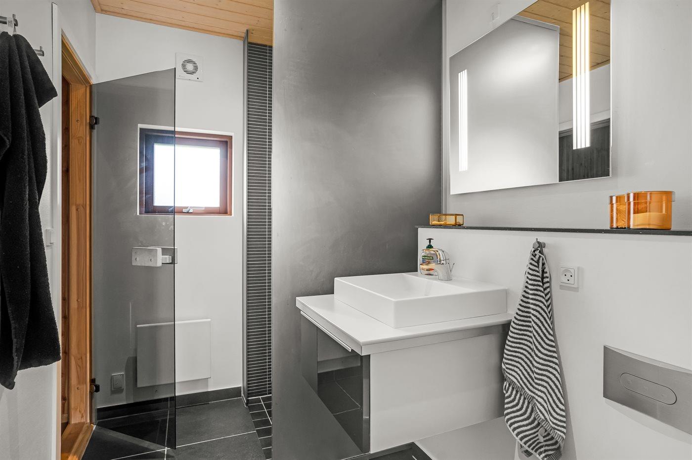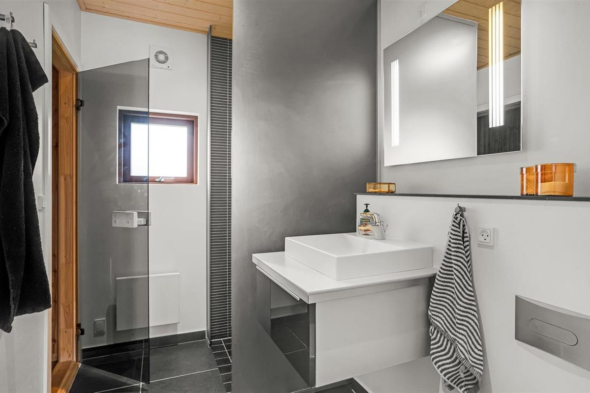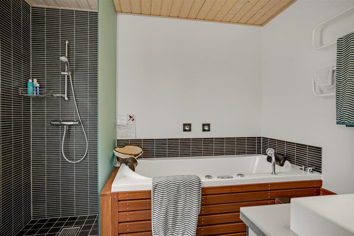 Er is 2 badkamers met douchehok en 2 toiletten. Er is vloerverwarming in 2 van de badkamers. De sauna biedt de gelegenheid tot ontspanning.