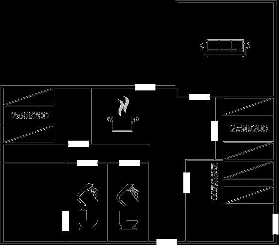 Er is 2 badkamers met douchehok en 2 toiletten. Er is vloerverwarming in 2 van de badkamers.