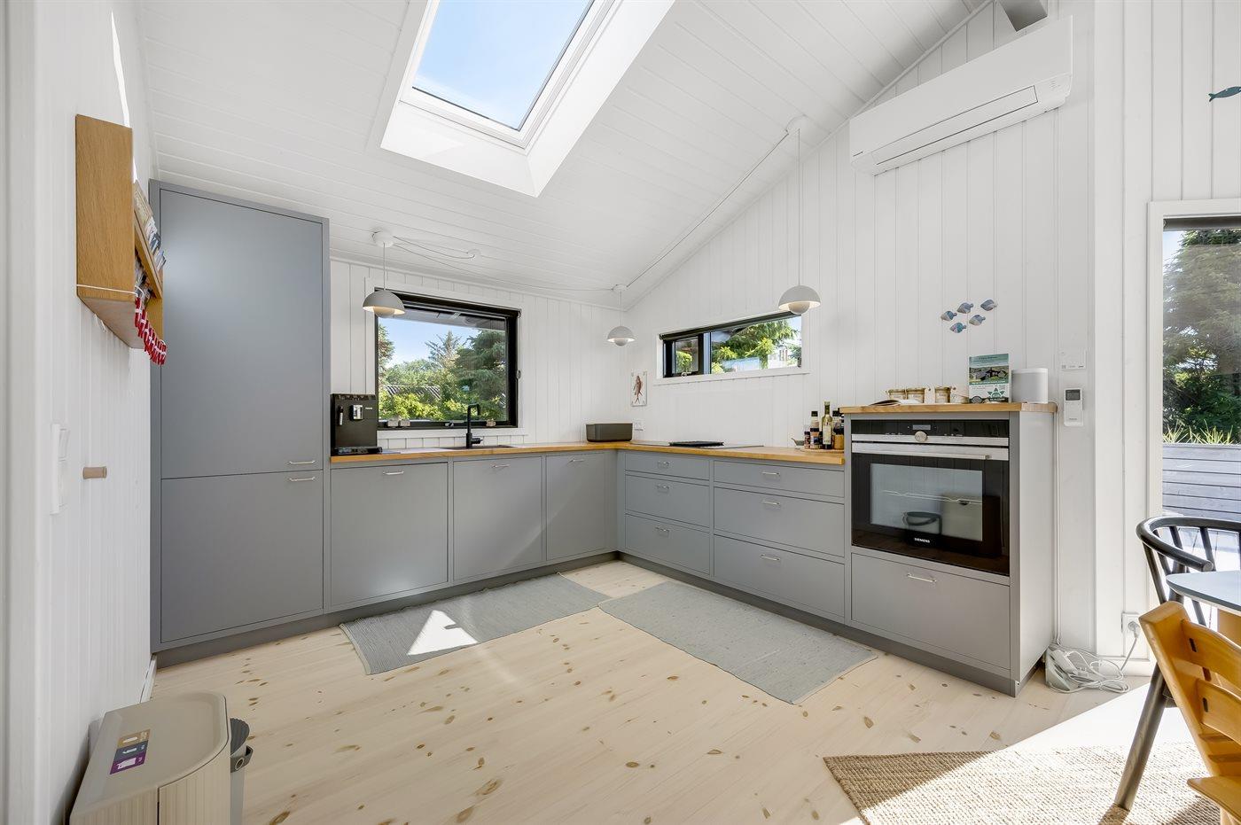 De keuken is uitgerust met koelkast Er is 4 inductiekookplaten, heteluchtoven en vaatwasser.