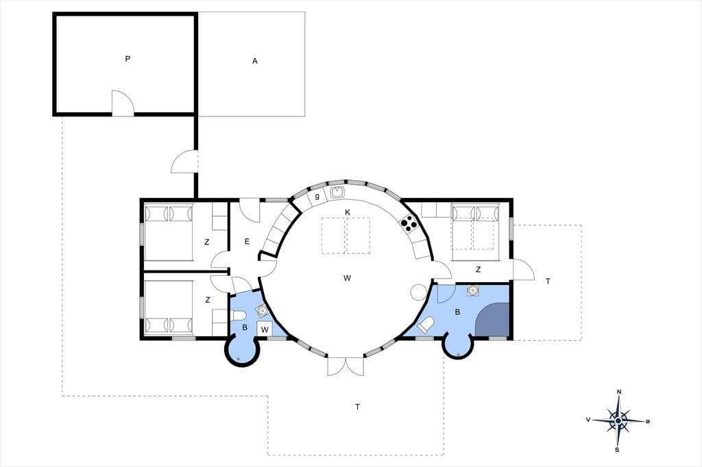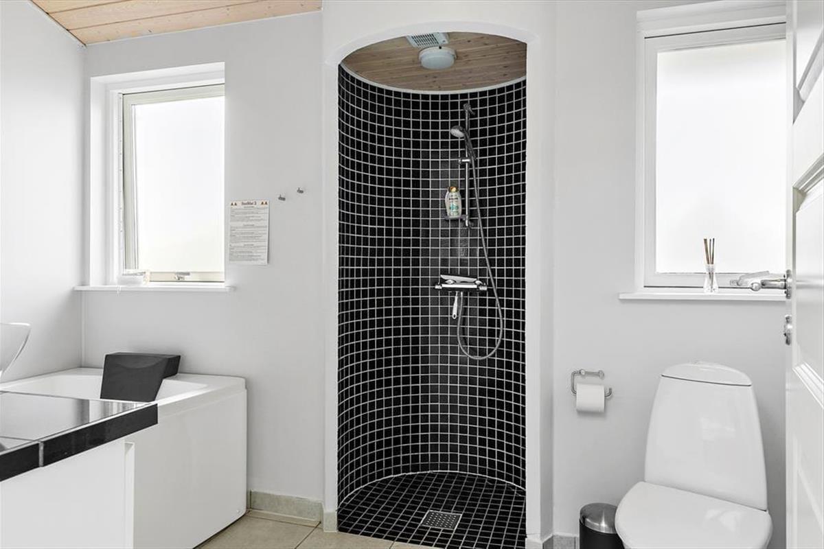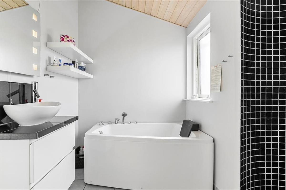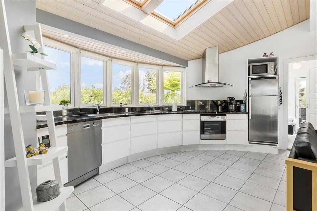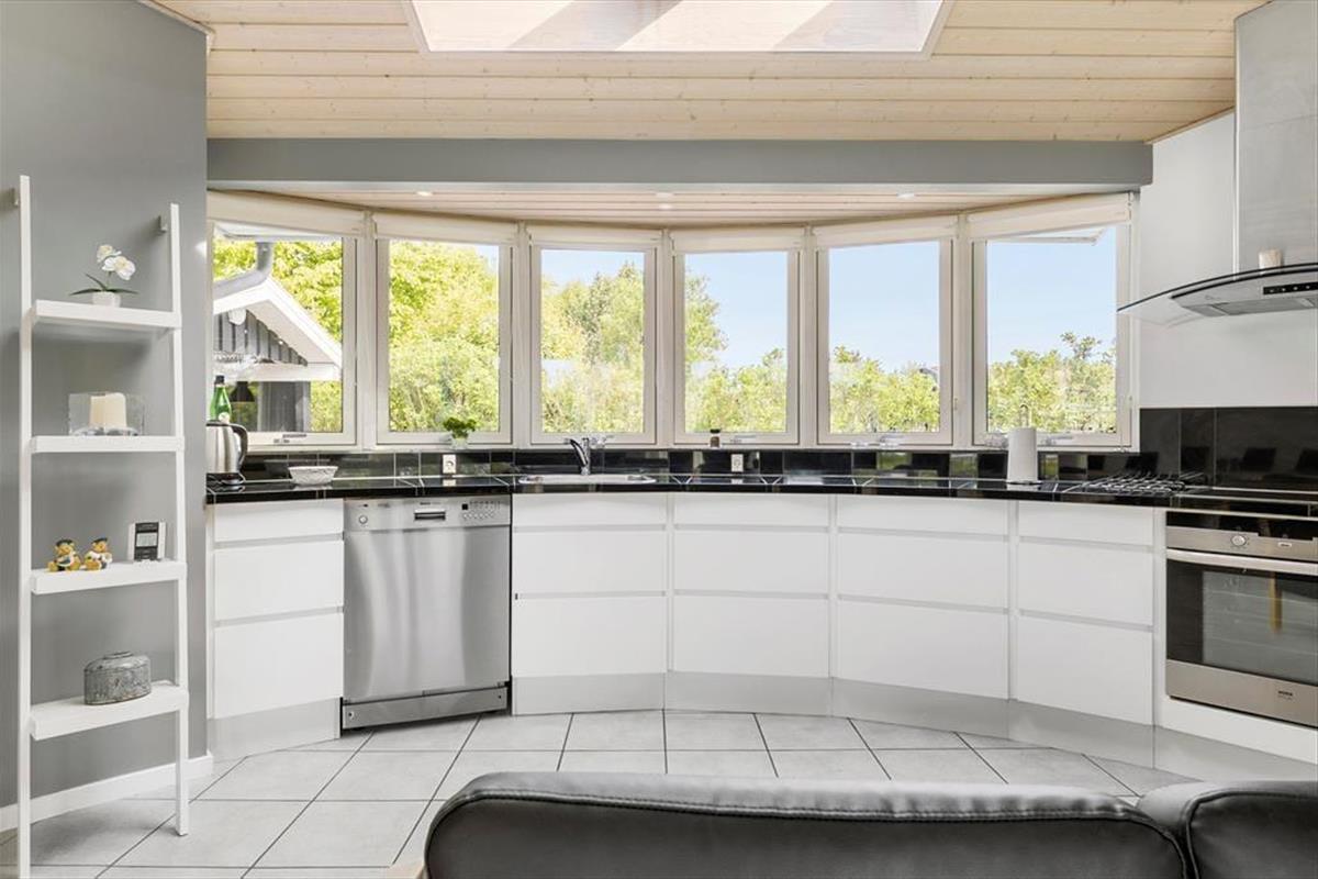 Am Ortsrand von Lønstrup liegt dieses außergewöhnlich gestaltete und vom Architekten entworfene Ferienhaus. Den Mittelpunkt des Hauses bildet der offene kreisförmige Küchen-Wohnbereich, der von großen Fensterpartien dominiert wird und viel Licht Nordjütlands in den großen Raum hinein strömen lässt. Aufgrund der kreisförmigen Architektur sind in diesem Raum keine Ecken vorhanden. Das ganze Haus ist exklusiv und modern mit qualitativ hochwertigen Möbeln eingerichtet, alles in einer schwarz, weißen und grauen Farbskala. Eine ausgezeichnete Auswahl an elektronischen (Groß-)Geräten und Kabel-TV und WLAN, also denken Sie beim Packen an Ihren Laptop und/oder Ihr Tablet. Das Ferienhaus verfügt über drei hervorragende Schlafzimmer und zwei stilvolle Badezimmer mit komplett gemauerten Duschnischen mit schwarzen Fliesen. Ein Badezimmer ist mit einem Whirlpool ausgestattet. Die Schlafzimmer und Badezimmer verteilen sich auf die jeweiligen Enden des Hauses, sodass je ein Bereich für die Eltern und Kinder zur Verfügung steht. In diesem Ferienhaus werden Sie garantiert einen entspannten und komfortablen Urlaub mit erstklassigen und funktionalen Rahmenbedingungen verbringen.