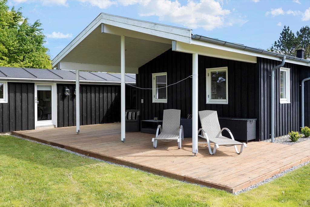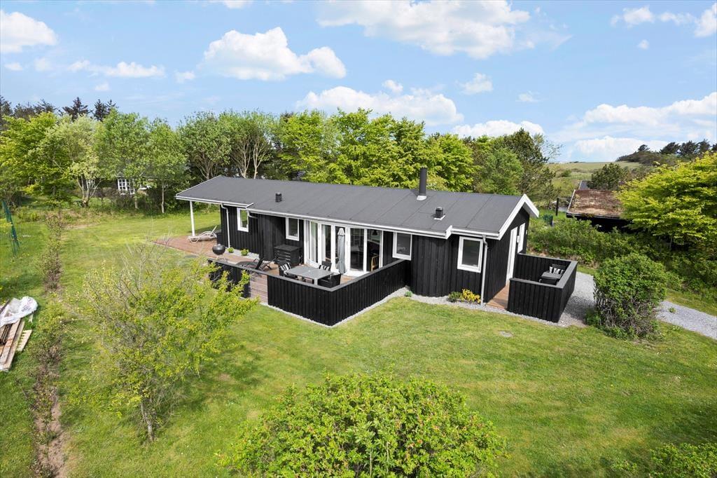Das Ferienhaus liegt auf einem wunderbaren Naturgrundstück, das von Bäumen und Büschen umschlossen ist. Hier können Ihre Kinder in Ruhe spielen und Sie können den Sommer komplett ungestört genießen. Rund um das Haus liegen mehrere Terrassen. Im Osten genießen Sie Ihr Frühstück, auf der Südseite gibt es Platz zum Sonnen und Entspannen in den Liegestühlen, im Westen haben Sie besten Windschutz zwischen dem Haupthaus und dem dazugehörigen Nebenhaus sowie unter der Überdachung.