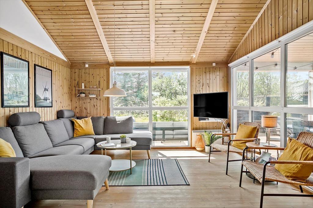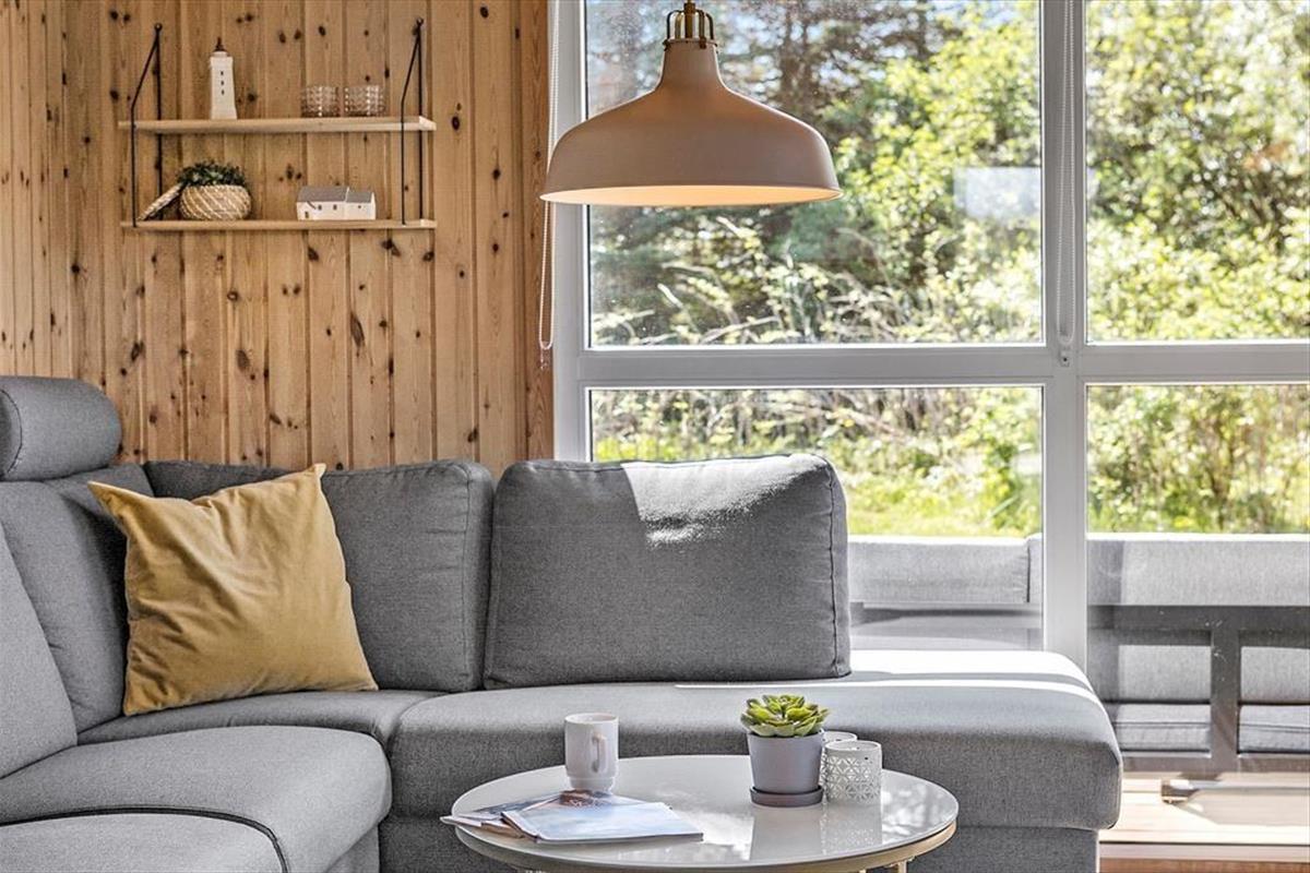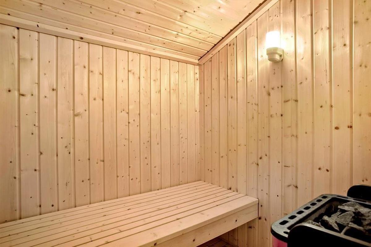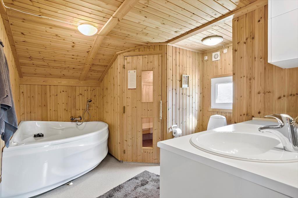 Das Ferienhaus verfügt über eine Küche in offener Verlängerung mit dem Wohnzimmer. Es sind drei Schlafzimmer vorhanden, eins mit einem Doppelbett, ein mit zwei Einzelbetten und ein weiteres mit einem Einzelbett. Darüber hinaus befinden sich eine Schlafnische im Wohnzimmer sowie ein Dachboden mit zwei Matratzen. Ein großes Badezimmer mit Whirlpool und Sauna sowie eine Gästetoilette stehen ebenfalls zur Verfügung. Das Ferienhaus ist sehr gepflegt und modern eingerichtet.