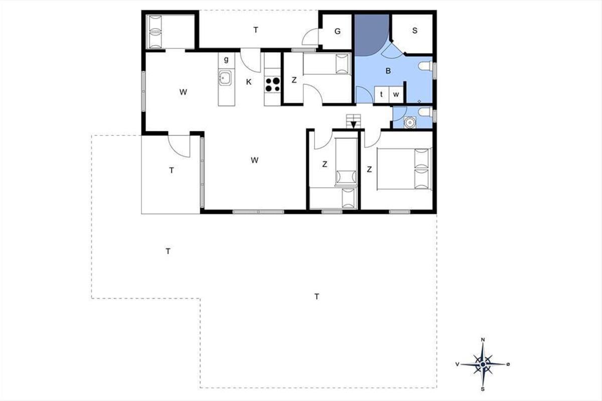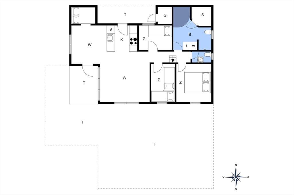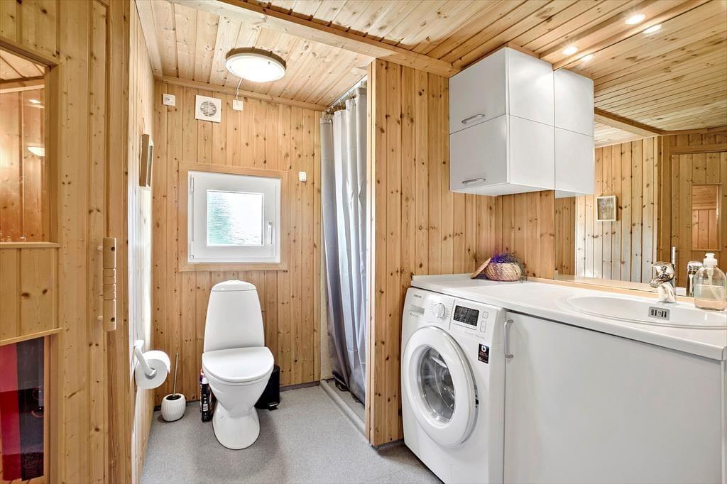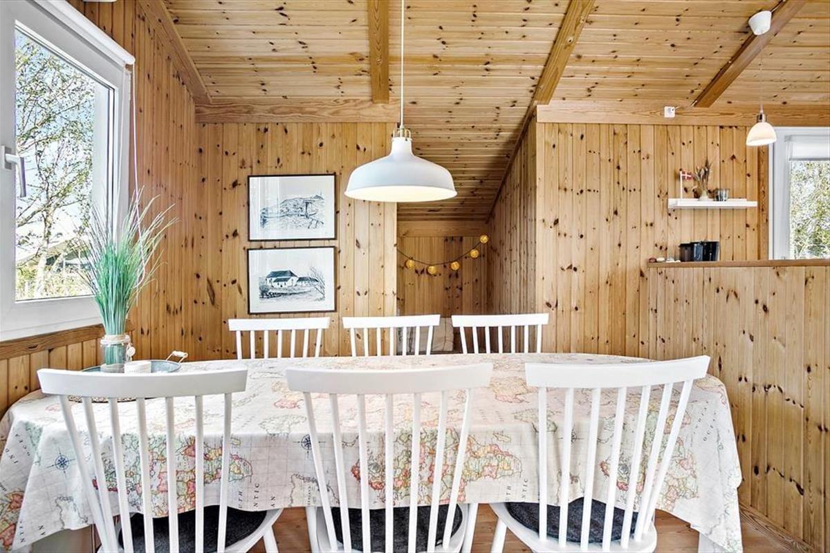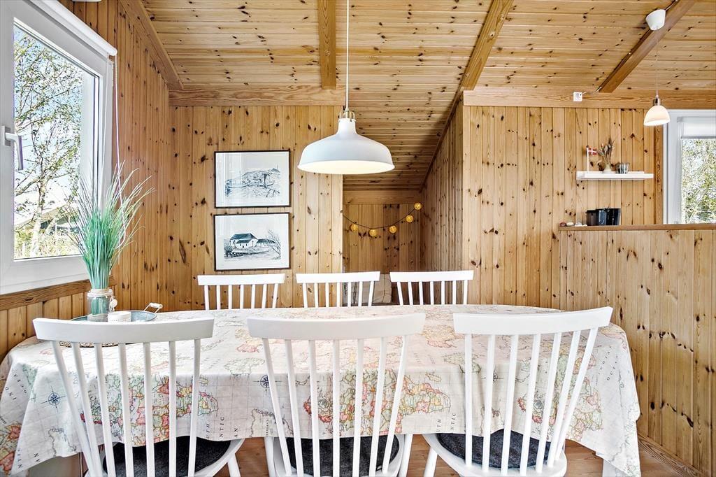 Das Ferienhaus verfügt über eine Küche in offener Verlängerung mit dem Wohnzimmer. Es sind drei Schlafzimmer vorhanden, eins mit einem Doppelbett, ein mit zwei Einzelbetten und ein weiteres mit einem Einzelbett. Darüber hinaus befinden sich eine Schlafnische im Wohnzimmer sowie ein Dachboden mit zwei Matratzen. Ein großes Badezimmer mit Whirlpool und Sauna sowie eine Gästetoilette stehen ebenfalls zur Verfügung. Das Ferienhaus ist sehr gepflegt und modern eingerichtet.