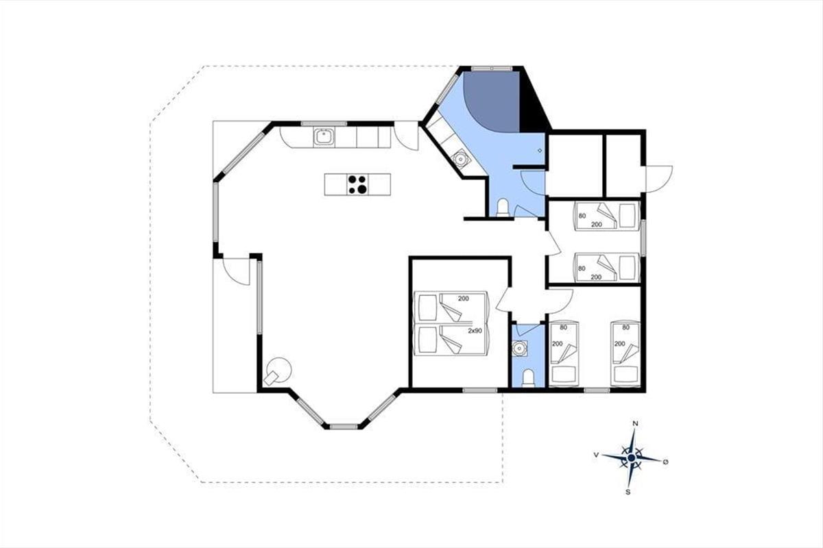 Das Ferienhaus ist hell und freundlich mit guten komfortablen Möbeln eingerichtet. Der große Wohnbereich umfasst eine Küche als offene Verlängerung des Wohnzimmers und hervorragender Mittel- und Treffpunkt der Familie. Badezimmer mit Whirlpool und Sauna. Die großen Fensterfronten bieten tagsüber tolle Lichtverhältnisse und vom Wohnzimmer wird die große Terrasse betreten.