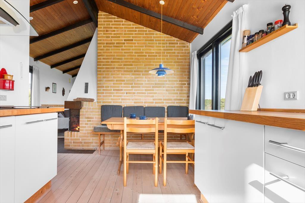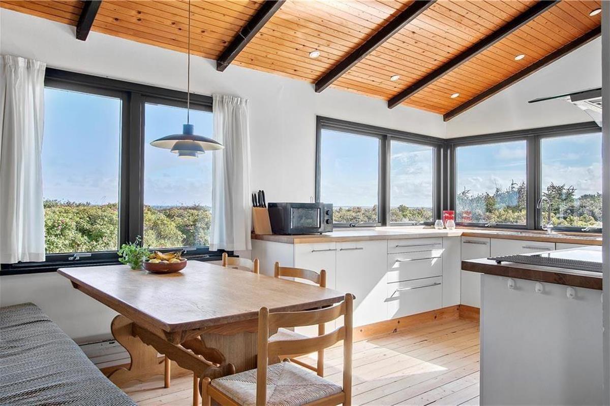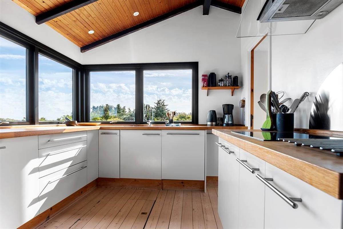 Der absolute Pluspunkt bei diesem Ferienhaus ist die neuere Küche mit einem fantastischen Panoramablick, den Sie während des Kochens in vollen Zügen genießen können. Diesen Ausblick können Sie ebenfalls vom Wohnzimmer bewundern. Das Haus verfügt über drei Schlafzimmer, eins mit einem Doppelbett und zwei Schlafzimmer mit jeweils einem Etagenbett. Älteres, aber sehr funktionales Badezimmer. Zum Haus gehört ein Nebenhaus mit einem großen Schlafzimmer mit zwei Einzelbetten sowie ein älteres Badezimmer mit fließend kaltem Wasser. Das Ferienhaus empfängt Sie gemütlich und herzlich in einer angenehmen Atmosphäre.
