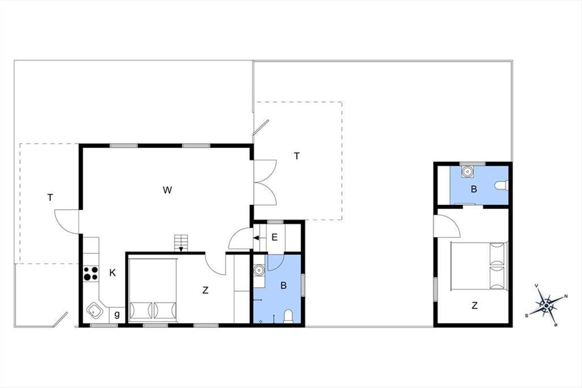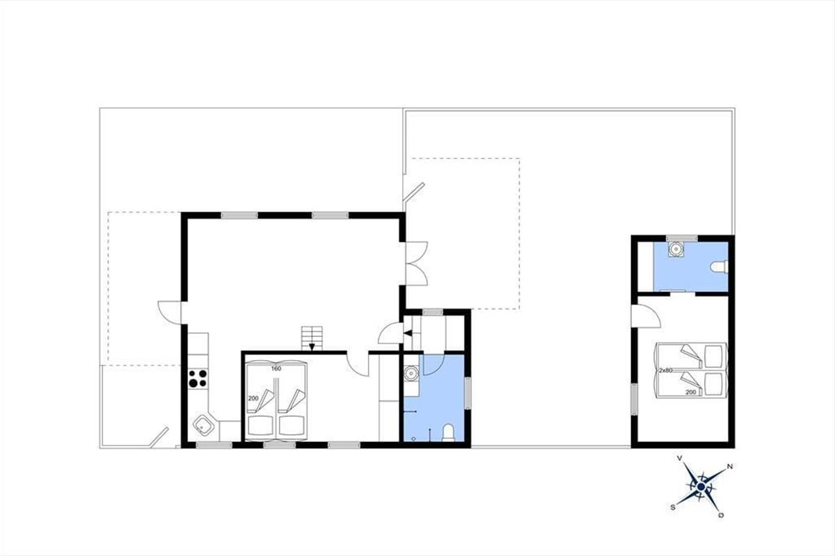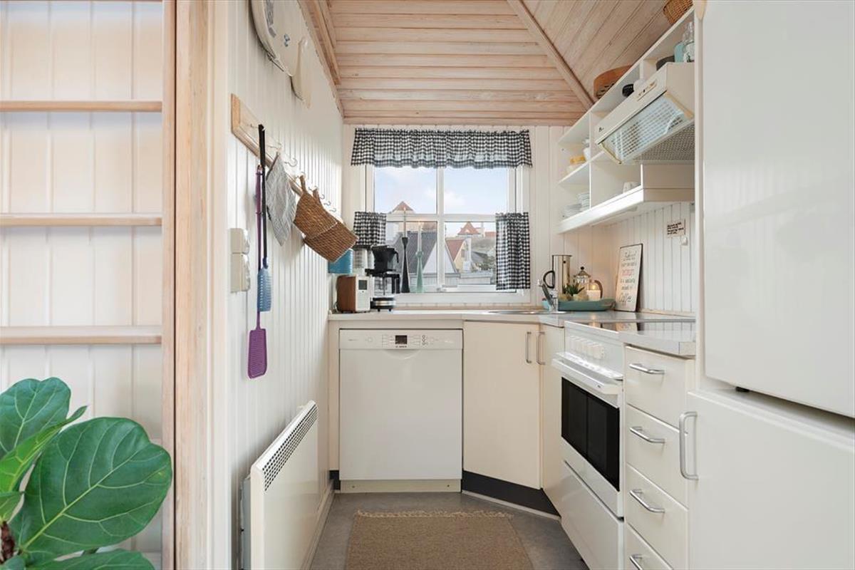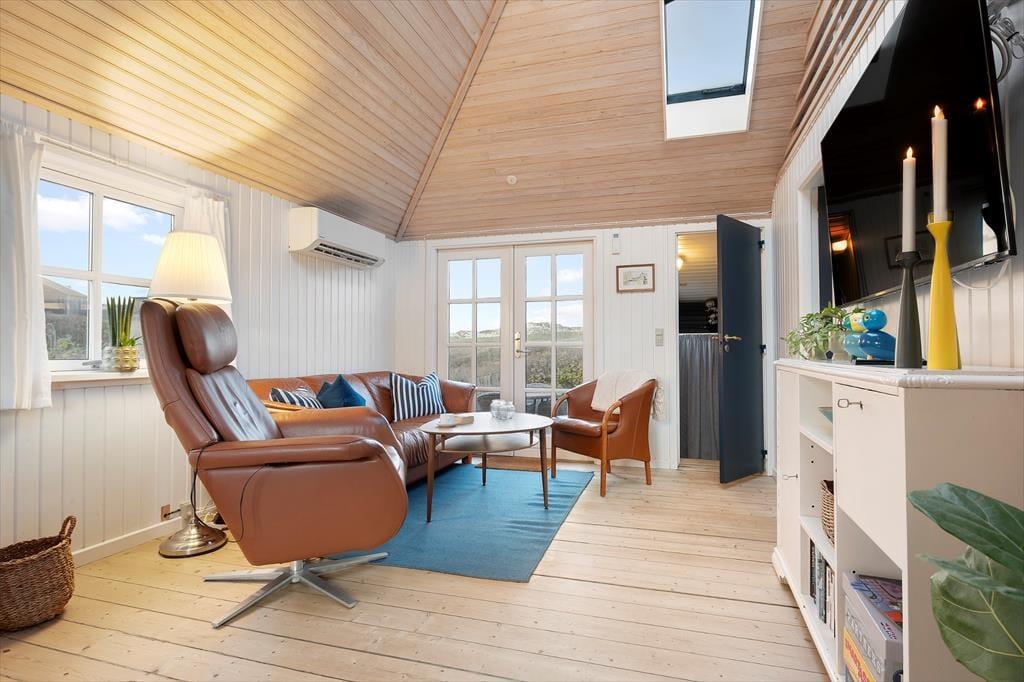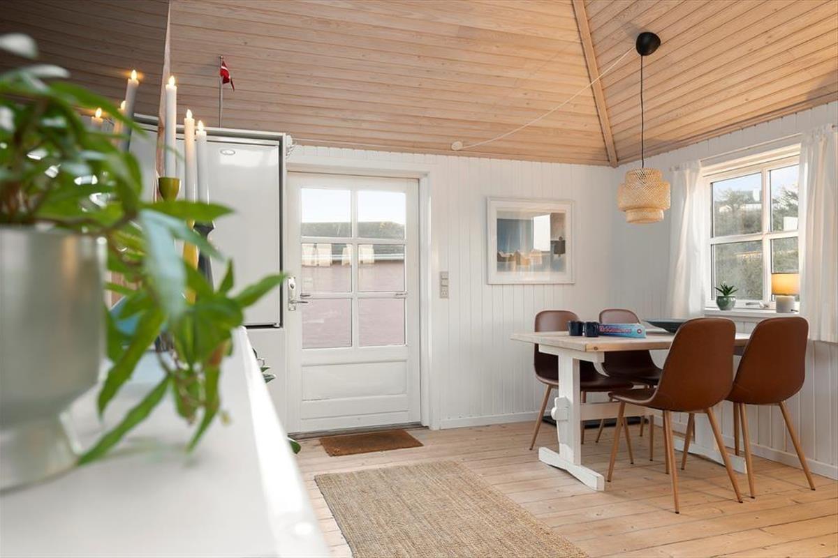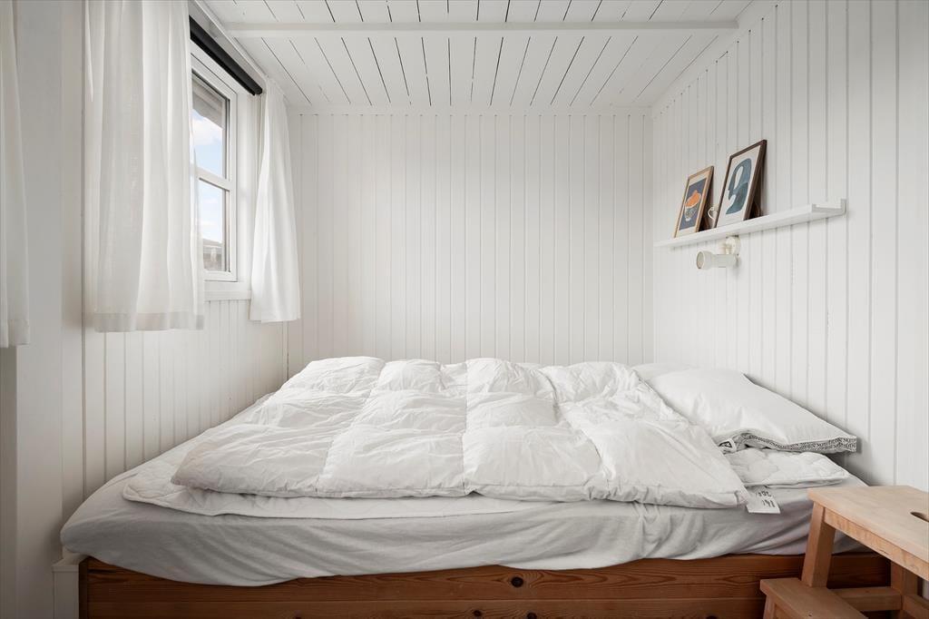 Das Ferienhaus ist gemütlich mit einer Küche in offener Verlängerung des Wohnzimmers eingerichtet. Das Ferienhaus verfügt über ein Schlafzimmer mit Doppelbett sowie ein Schlafboden mit zwei Matratzen. Zum Haus gehört ein Nebenhaus, das nur von Kalenderwoche 18 bis 43 genutzt werden kann. Das Ferienhaus ist hell und luftig eingerichtet. Besonders das große Dachfenster sorgt für fantastische Lichtverhältnisse und eine wunderbare Atmosphäre. Eine Doppelgartentür führt auf die schöne Terrasse hinaus.