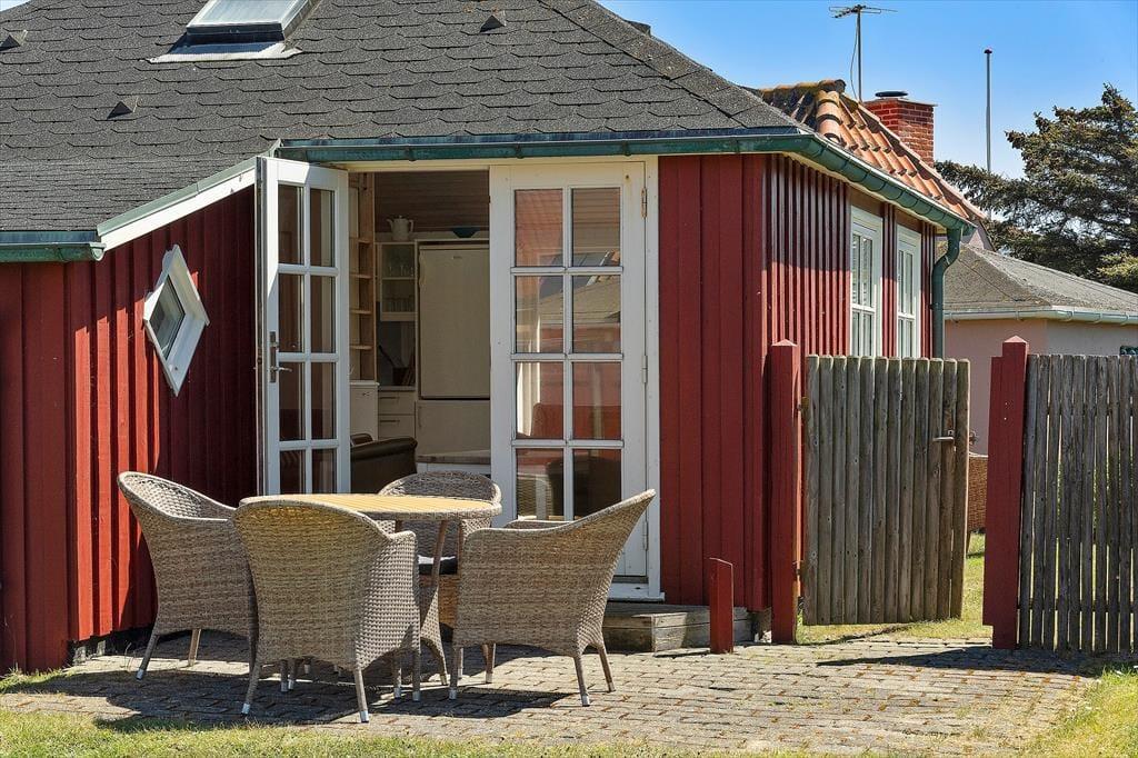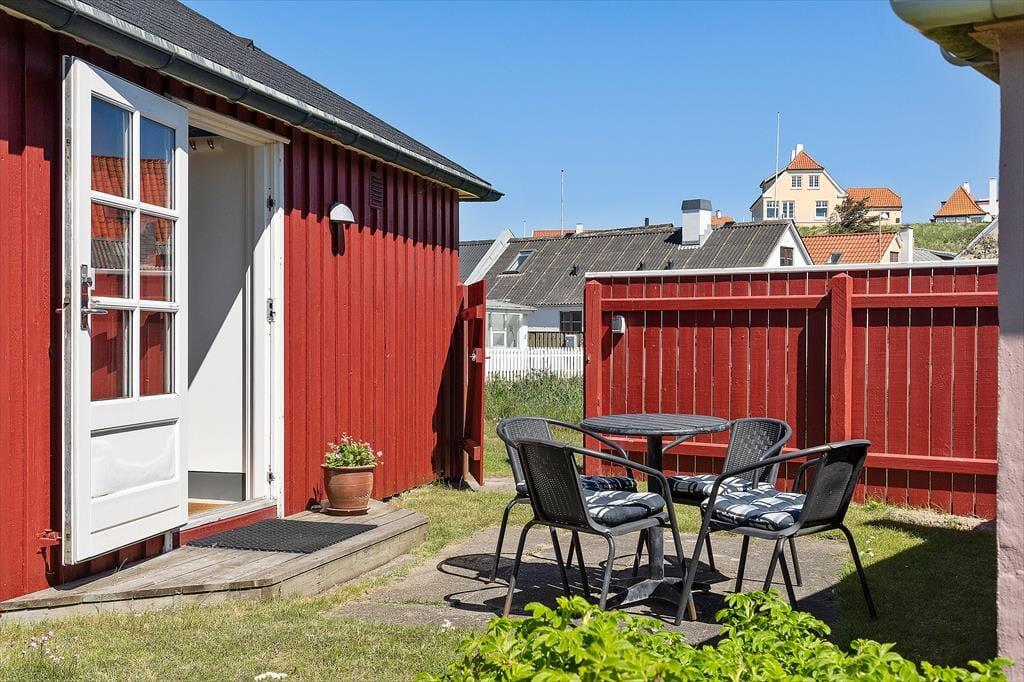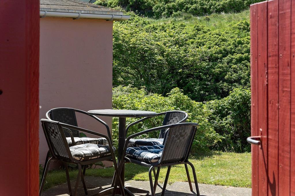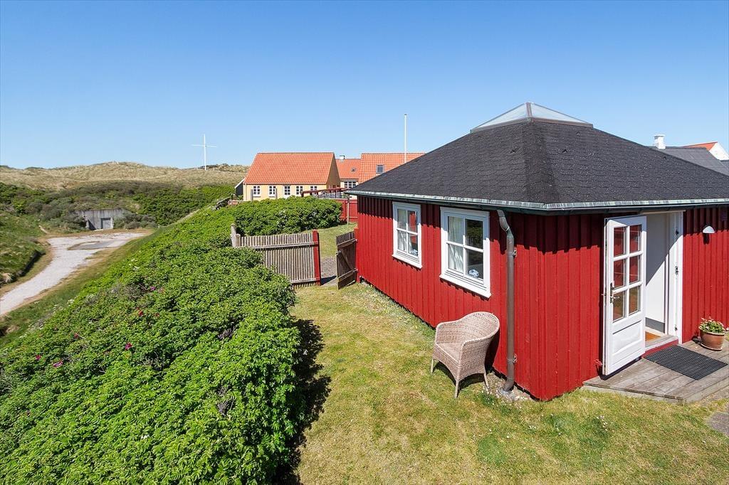 Das Ferienhaus liegt auf einem eingezäunten Gartengrund. Hier ist Platz zum Spiel mit oder ohne Ball vorhanden und hier sind Sie ungestört. Das Grundstück ist umgeben von Hagebuttenbüschen, die vor dem Westwind schützen. Die vielen guten Terrassen, die das Haus umgeben, bieten Windschutz und Möglichkeiten die Sonne zu genießen.