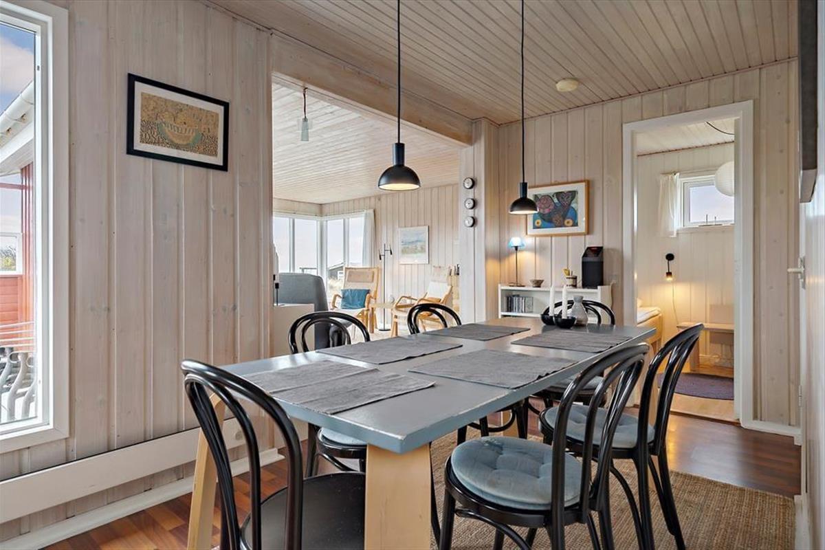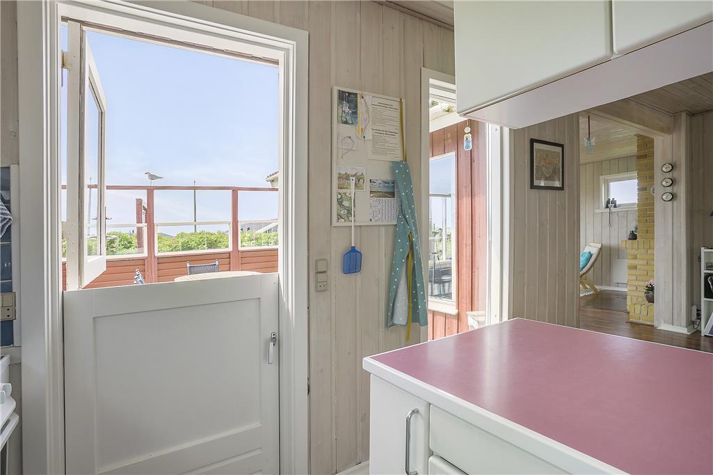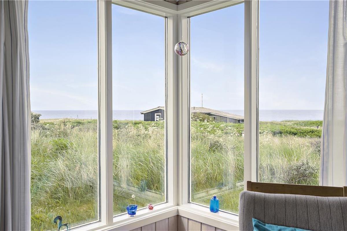 Das helle und einladend eingerichtete Ferienhaus bietet Ihnen eine wohl durchdachte und komfortable Möblierung. Die großen Fenster verleihen dem Haus einen herrlichen Lichteinfall und verwöhnen Sie mit einem herrlichen Ausblick auf das Meer. Der Kamin sorgt an kühleren Abenden sorgt für eine gemütliche Atmosphäre und heimelige Wärme. Die Küche befindet sich in offener Verbindung mit dem Wohnbereich. Ihnen stehen zwei Schlafräume mit Doppelbetten und ein Schlafraum mit zwei Einzelbetten zur Verfügung. Bitte beachten Sie, dass einer der Schlafräume ausschließlich von der Terrasse aus zugänglich ist. Im hellen und freundlichen Badezimmer sorgt eine Waschmaschine für allzeit saubere Handtücher und Badesachen.