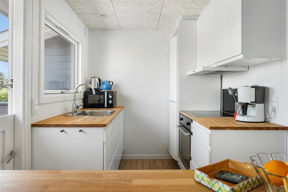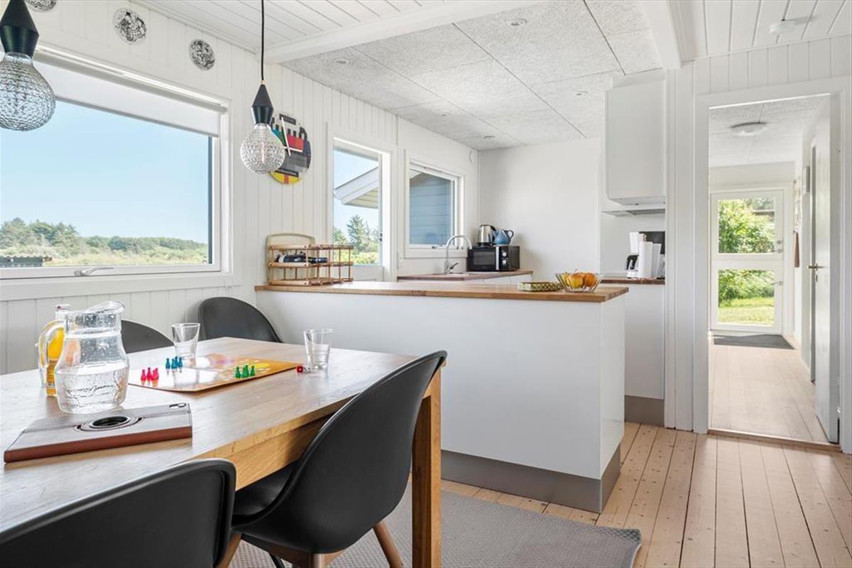 Der kleine Meerblick vom Wohnzimmer aus, lässt bereits vermuten, dass Sie nicht sonderlich weit vom Strand entfernt wohnen. Vom Haus und der Sackgasse Havtornvej müssen Sie lediglich einen 500 Meter langen Spaziergang machen, um am Strand zu stehen und über die Nordsee zu blicken. Die nähere Umgebung bietet Ihnen gute Wander- und Fahrradrouten, die Sie mitten in die prachtvolle Natur führen. Falls es Sie eher in die Ortschaften zieht, empfehlen wir Ihnen einen Spaziergang in den Ortskern von Lønstrup, in dem mehrere Restaurants, kleine Geschäfte und diverse Kunstgalerien die schmalen, gemütlichen Straßen säumen. Zu den sehenswerten und beliebten Sehenswürdigkeiten und Ausflugszielen zählen die mehr als imposante Wanderdüne Rubjerg Knude und die beiden Städte Hirtshals und Hjørring.