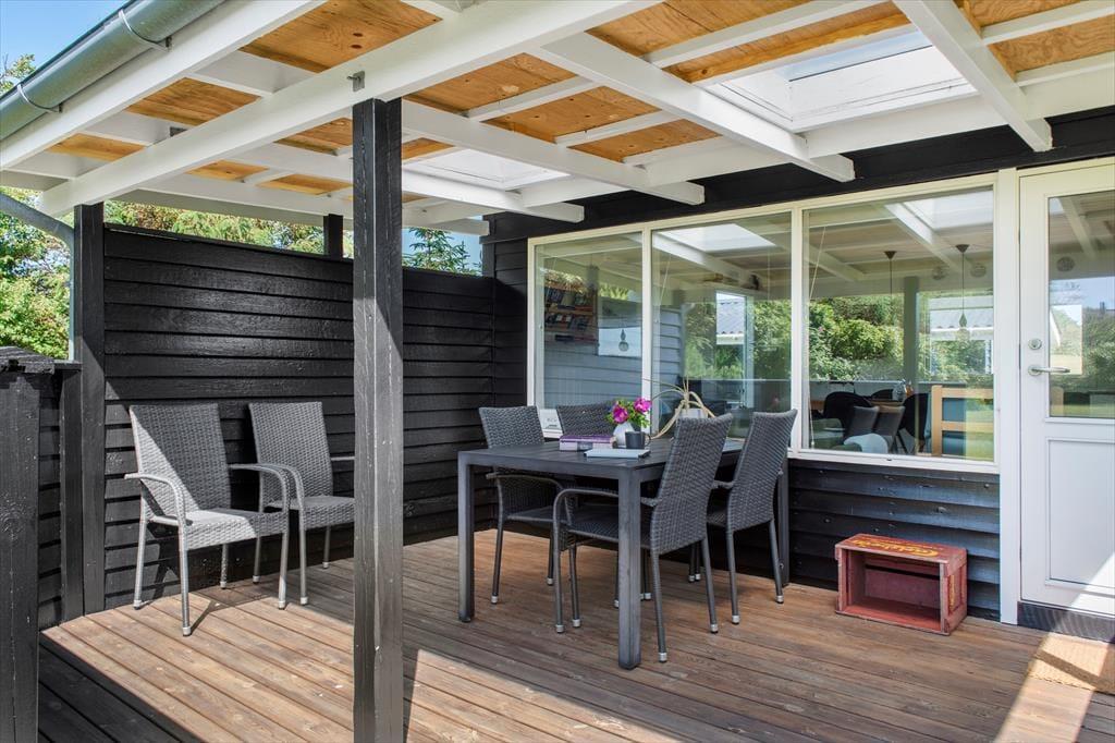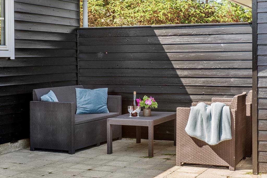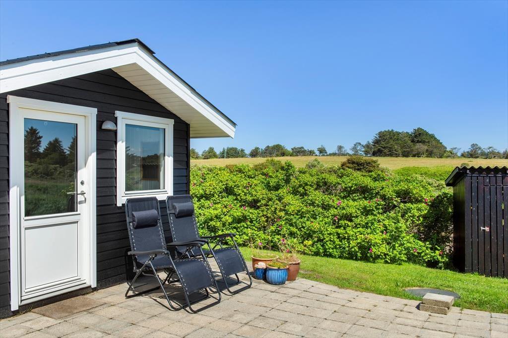 Die idyllische Umgebung trägt auch maßgeblich zu ihrer Erholung und Entspannung bei, wenn Sie Ihr Urlaubsleben hinaus ins Freie verlegen. Das Ferienhaus befindet sich auf einem schönen Gartengrundstück, das von herrlich duftenden Heckenrosen und anderer Bepflanzung umgeben ist, die sich harmonisch in die umliegende Natur einfügt. Während Ihre Kinder auf der großen Rasenfläche umhertollen und mit dem Ball spielen, können Sie es sich in aller Ruhe auf einem komfortablen Gartenstuhl auf der Terrasse gemütlich machen. Sie haben die Wahl zwischen einer überdachten und einer komplett offenen Terrasse. Egal, für welche Sie sich entscheiden werden, Sie werden auf beiden Terrassen den Gesang der Vögel, den Urlaubsfrieden und hoffentlich auch das schöne Sommerwetter in vollen Zügen genießen.