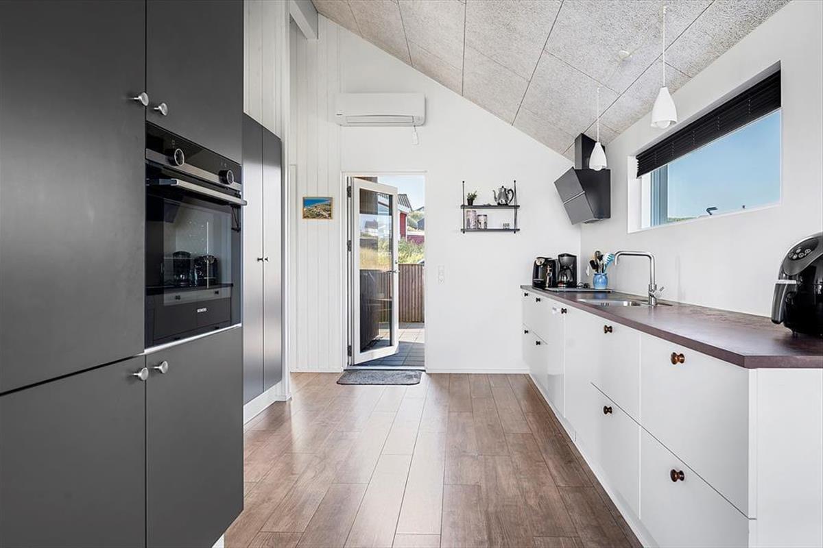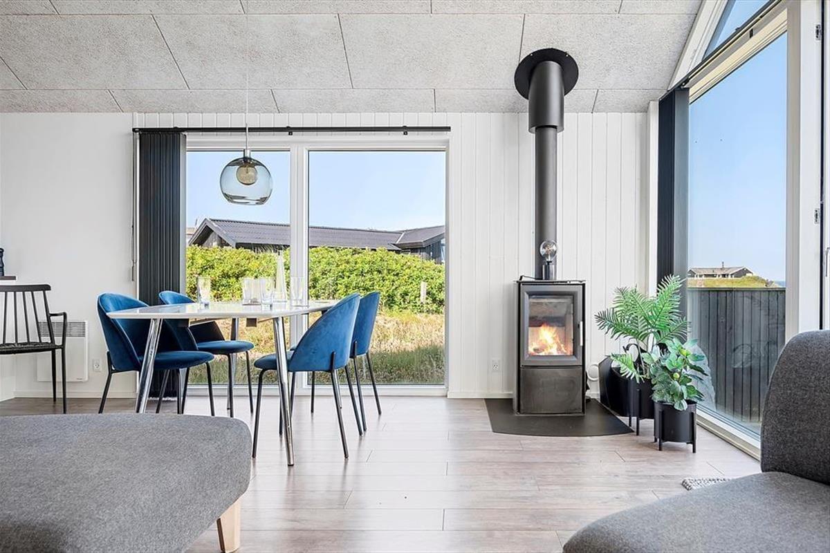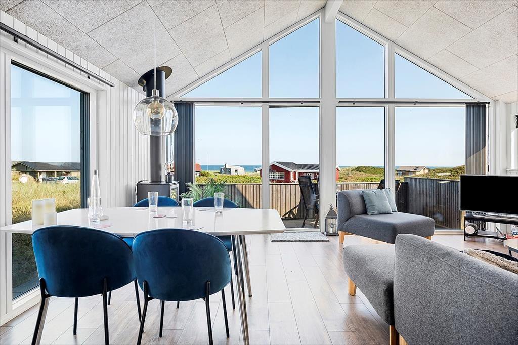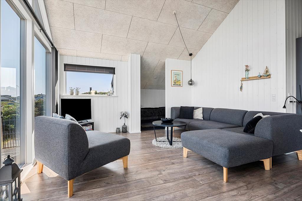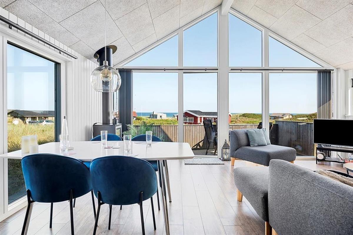 Der helle und einladende Wohnbereich des Hauses empfängt Sie mit stilvoller Einrichtung und einer wohltuenden Atmosphäre. Das Wohnzimmer und die offene Küche gehen nahtlos ineinander über und bieten einen idealen Ort für gemeinsames Kochen, Spielen oder einfaches Entspannen mit Blick auf das Meer. Große Fenster sorgen für viel Licht und machen den Raum besonders freundlich. Die Einrichtung ist geschmackvoll und modern – perfekt zum Abschalten und Wohlfühlen. Das Haus bietet Platz für fünf Personen, und auch Ihr Hund ist herzlich willkommen, denn hier gibt es genug Platz für die ganze Familie – inklusive der vierbeinigen Begleiter.