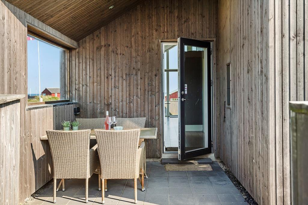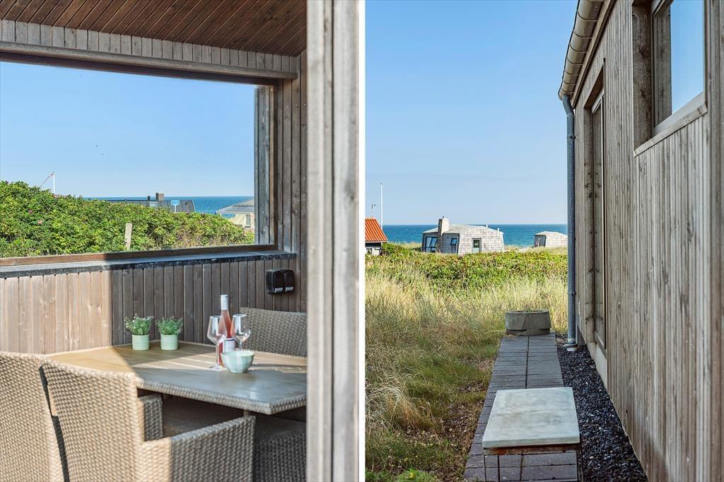 Rund um das Haus befinden sich mehrere geschützte Terrassen, die nicht nur sonnige Sitzplätze bieten, sondern auch ideal sind, wenn Kinder oder Hunde mitreisen. Hier finden Sie immer ein windgeschütztes Plätzchen in der Sonne – ob zum Frühstück im Freien oder zum Grillabend unterm Sternenhimmel. In den komfortablen Gartenmöbeln lässt sich der Urlaubstag entspannt verbringen – mit einem guten Buch, einem Glas Wein und dem Rauschen der Wellen im Hintergrund. Wenn abends die Sonne langsam ins Meer sinkt, bietet sich die Terrasse als perfekter Ort an, um den Tag in Ruhe ausklingen zu lassen.