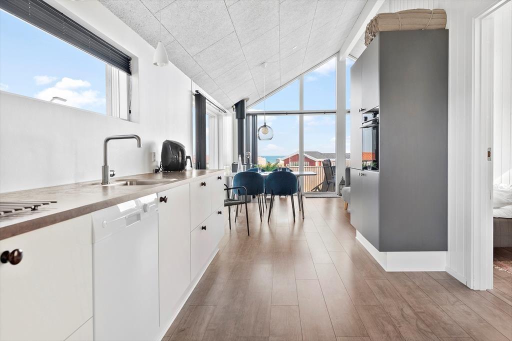 Dank der hervorragenden Lage in Lønstrup erreichen Sie sowohl das Meer als auch das charmante Ortszentrum bequem zu Fuß. Ein Spaziergang führt Sie direkt zum breiten Sandstrand der Nordsee – ideal für ein erfrischendes Bad, eine Strandwanderung oder ein gemütliches Picknick im Sand. Auch der lebendige Ortskern mit kleinen Läden, gemütlichen Cafés und guten Restaurants liegt ganz in der Nähe. Ein kulinarisches Highlight ist das mit einem Michelin-Stern ausgezeichnete Restaurant Villa Vest, das Sie mit erstklassiger Küche und traumhaftem Meerblick verwöhnt. Kunsthandwerk, Galerien und Glasbläser-Ateliers prägen das Stadtbild von Lønstrup – hier finden Sie garantiert ein ganz besonderes Urlaubssouvenir. Wer Lust auf noch mehr Aktivitäten hat, erreicht das Skallerup Seaside Resort in wenigen Minuten mit dem Auto – mit Wellness, Badelandschaft und Unterhaltung für Groß und Klein.