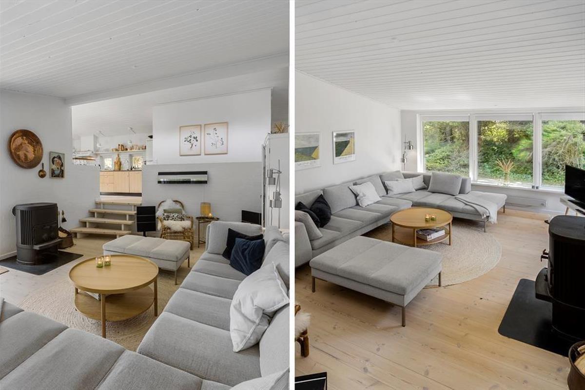 Das Ferienhaus wurde im Jahr 2019 liebevoll renoviert. Im Inneren erwartet Sie eine perfekte Balance zwischen ursprünglichen Details und modernen Annehmlichkeiten. Das einladende Mietobjekt verfügt über helle stimmungsvolle Räumlichkeiten, in denen Sie sich gerne aufhalten werden. Besonders reizvoll ist die Unterteilung in verschiedene Wohnebenen. Vom Küchen- und Essbereich gelangen Sie über eine Treppe hinab in den offen angrenzenden, gemütlichen Wohnraum, der mit einem Kaminofen und Ausblick in den Garten zu überzeugen weiß. Eine Treppe führt Sie außerdem hinunter zu den drei Schlafräumen, die allesamt mit je einem komfortablen Doppelbett eingerichtet sind. Der Rest der Wohnfläche ist einem Badezimmer und einem Hauswirtschaftsbereich mit einer Waschmaschine gewidmet.