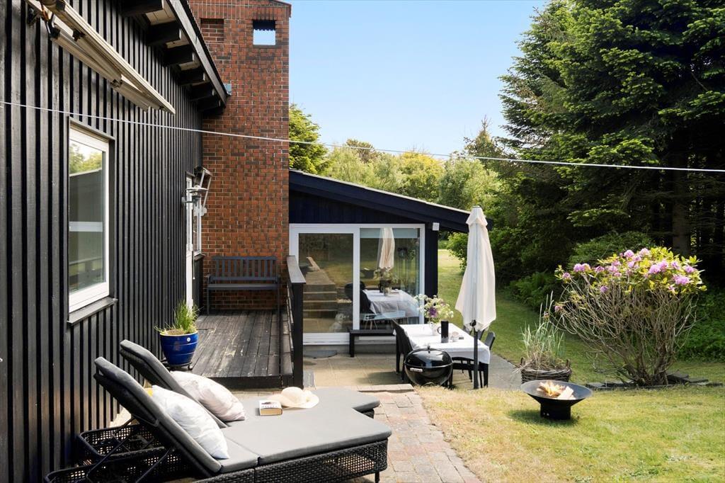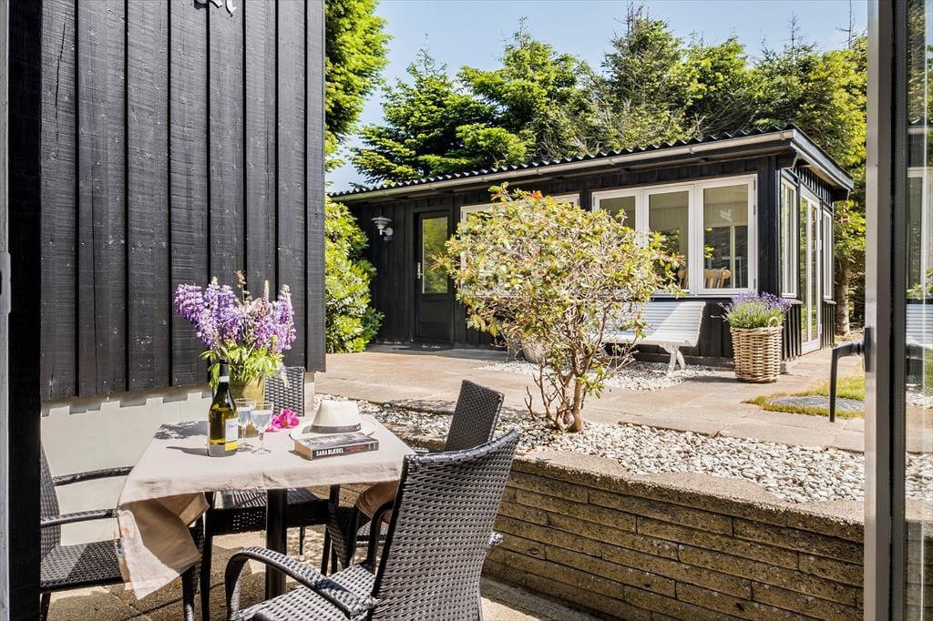 Der Garten, der das Haus umgibt, ist dank der dichten Randbepflanzung angenehm abgeschirmt. Nadelbäume, Rhododendren und andere grüne Gewächse bilden einen reizvollen Anblick, der Ihre Urlaubsstunden auf den Terrassen untermalt. Sie genießen die Wahl zwischen mehreren Terrassen, die sich im Garten verteilen. Zu jeder Zeit werden Sie einen schönen Aufenthaltsplatz in der Sonne finden.