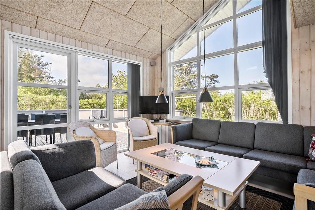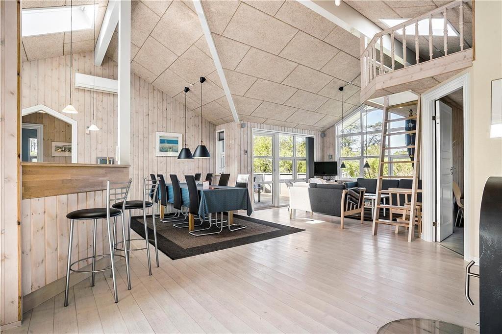 Erholung auf 117 lichtdurchfluteten Quadratmetern in einem 2005 erbauten Ferienhaus. Über einen äußerst gepflegten Eindruck hinaus bietet dieses Haus einen durchdachten Grundriss. Vier Schlafzimmer und zwei Badezimmer befinden sich gleichermaßen aufgeteilt an beiden Enden des Hauses und bieten somit ideale Voraussetzungen für einen Urlaub mit zwei Familien. Das gemütliche Wohnzimmer mit hoher Decke und offener, integrierter Küche, verbindet diese zwei Wohneinheiten. Große Fensterflächen sorgen für Helligkeit und freie Sicht in den Garten.