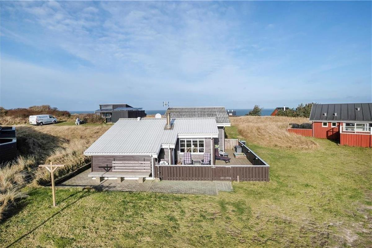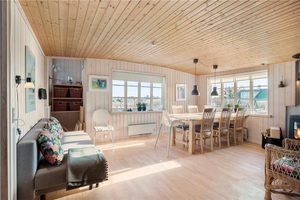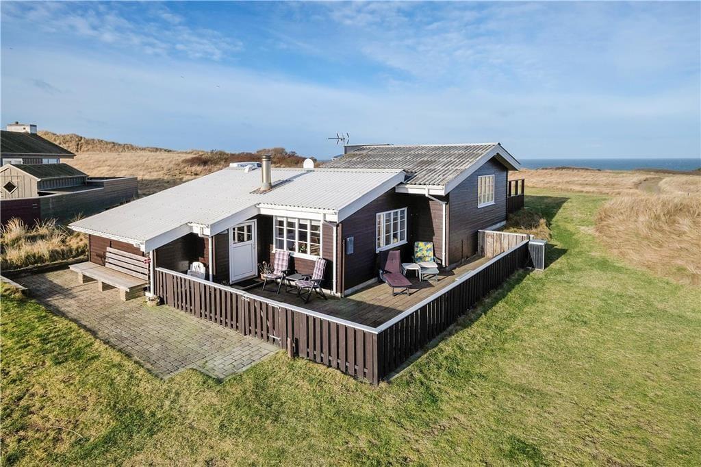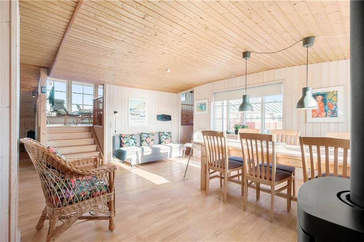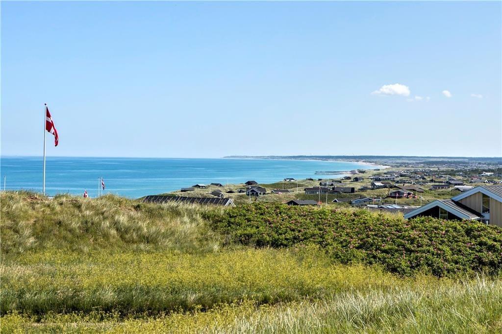 Dieses schöne Urlaubsdomizil befindet sich in erhöhter Lage inmitten der Küstenlandschaft, nahe den steilen Abhängen, die sich hoch über dem Strand von Lønstrup erheben. Vom Wohnzimmer und der Terrasse aus haben Sie einen hervorragenden Ausblick über die Nordsee. Dieser präsentiert sich Ihnen besonders an windigen Herbsttagen mit weiß aufragenden Wellen oder auch an einem schönen Sommertag mit glattem, ganz ruhigem Wasser in schönster Art und Weise.