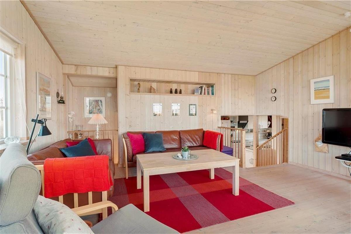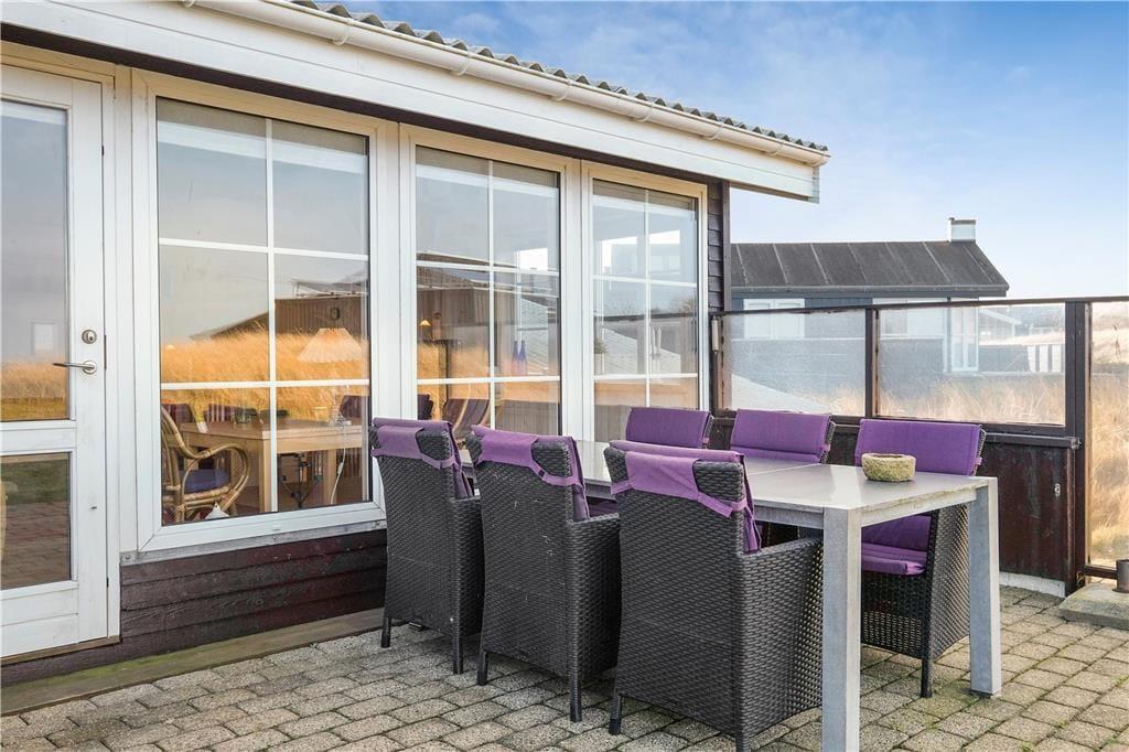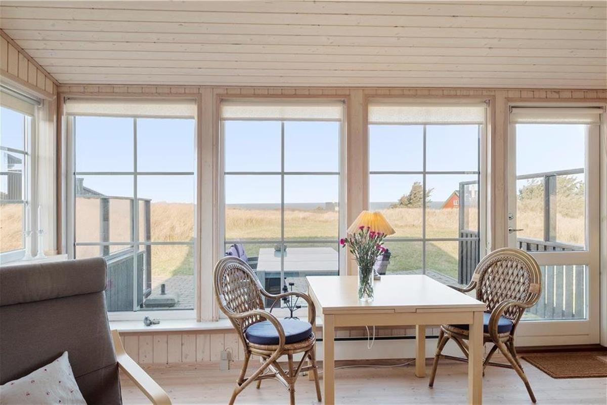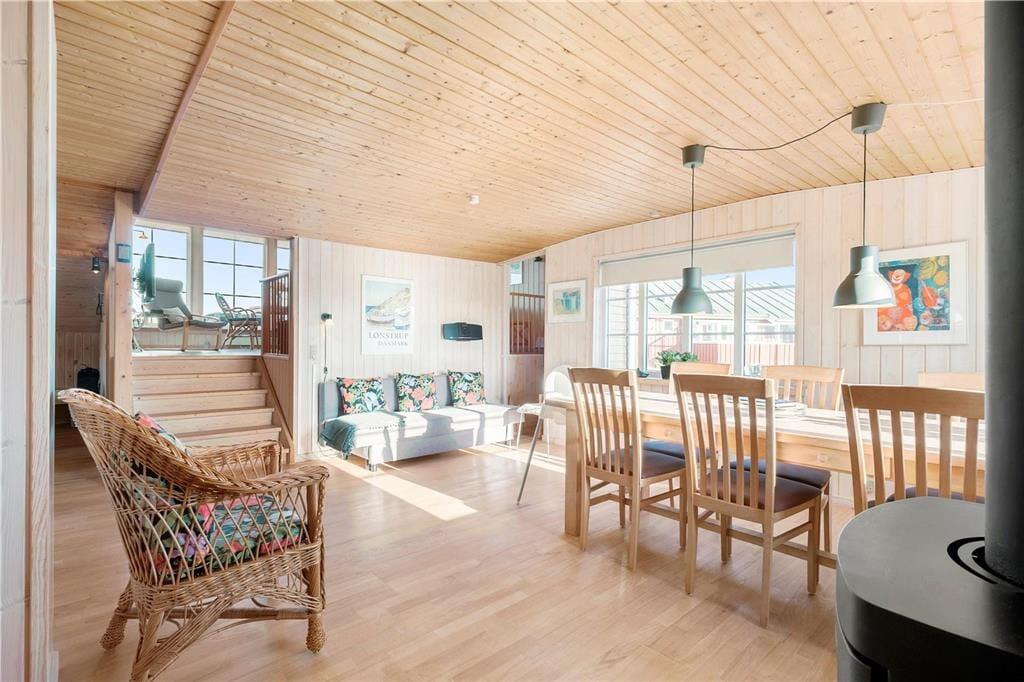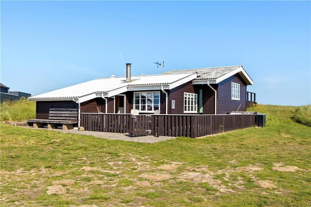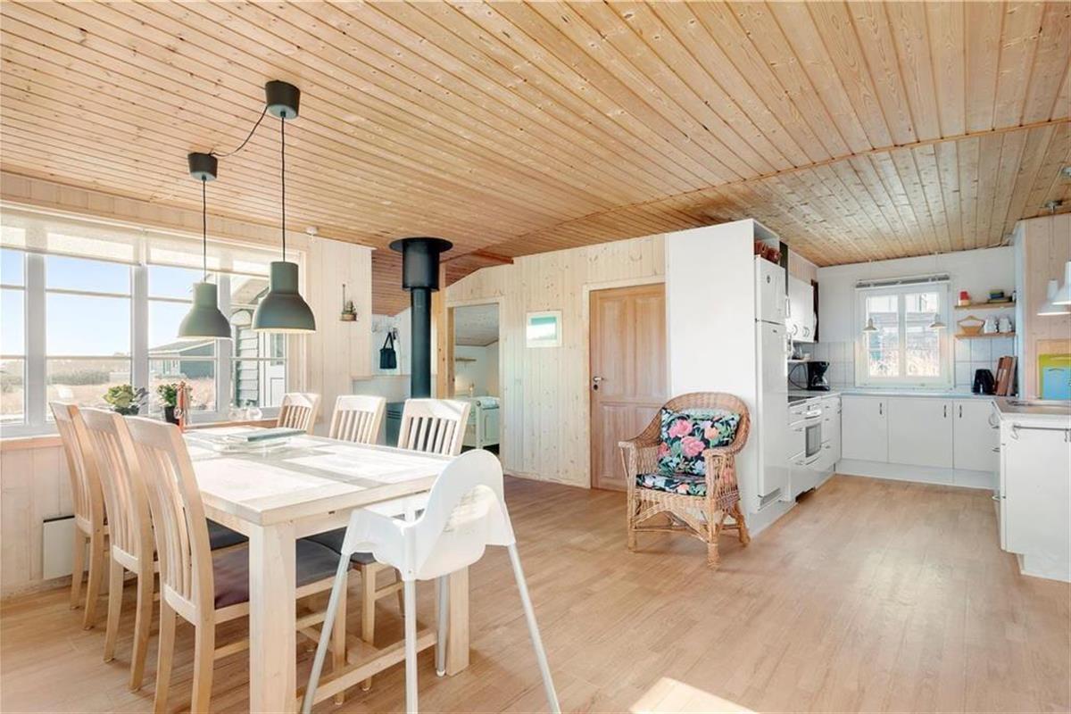 Dieses schöne Urlaubsdomizil befindet sich in erhöhter Lage inmitten der Küstenlandschaft, nahe den steilen Abhängen, die sich hoch über dem Strand von Lønstrup erheben. Vom Wohnzimmer und der Terrasse aus haben Sie einen hervorragenden Ausblick über die Nordsee. Dieser präsentiert sich Ihnen besonders an windigen Herbsttagen mit weiß aufragenden Wellen oder auch an einem schönen Sommertag mit glattem, ganz ruhigem Wasser in schönster Art und Weise.