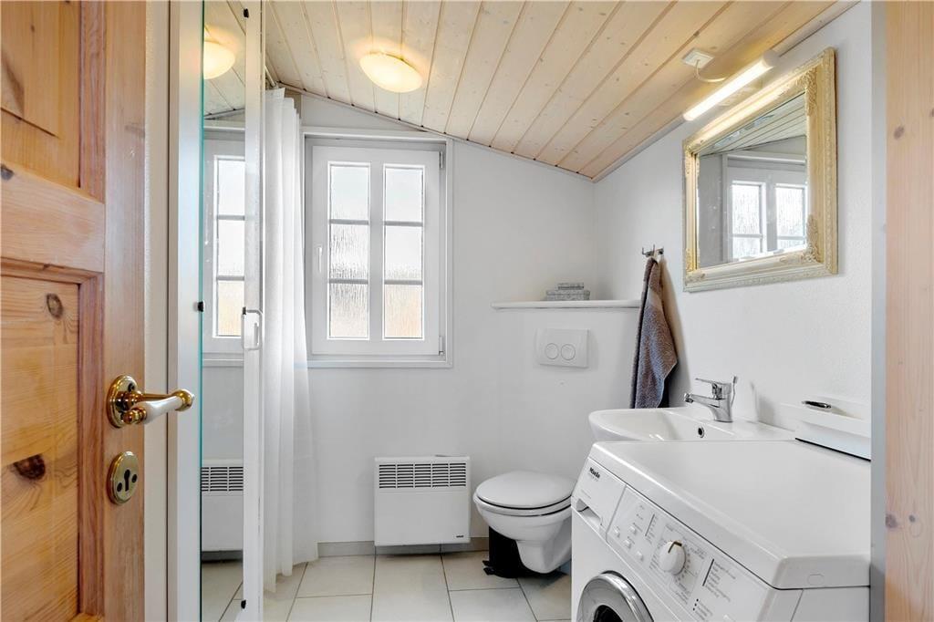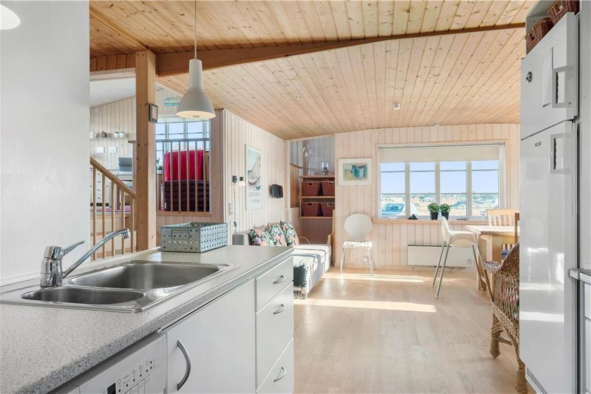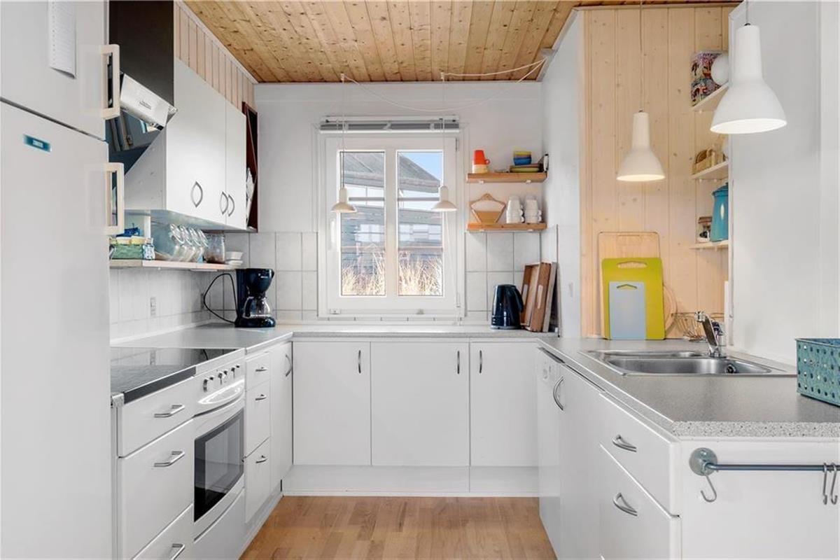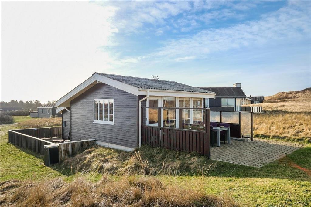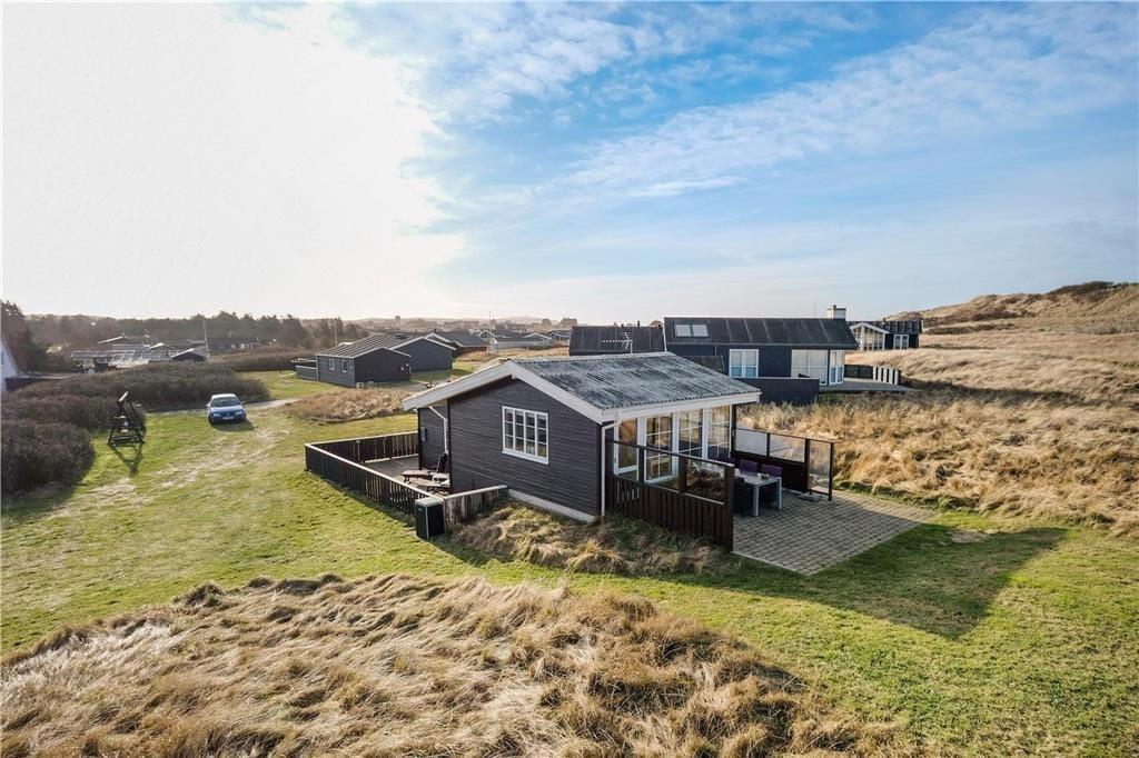 Dieses schöne Urlaubsdomizil befindet sich in erhöhter Lage inmitten der Küstenlandschaft, nahe den steilen Abhängen, die sich hoch über dem Strand von Lønstrup erheben. Vom Wohnzimmer und der Terrasse aus haben Sie einen hervorragenden Ausblick über die Nordsee. Dieser präsentiert sich Ihnen besonders an windigen Herbsttagen mit weiß aufragenden Wellen oder auch an einem schönen Sommertag mit glattem, ganz ruhigem Wasser in schönster Art und Weise.
