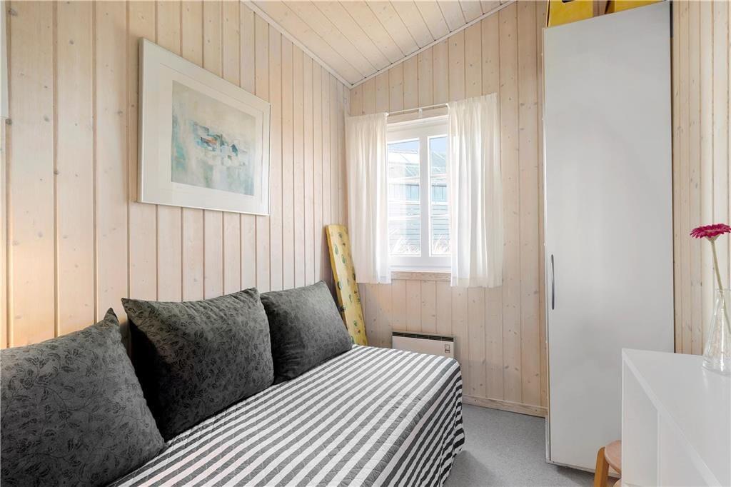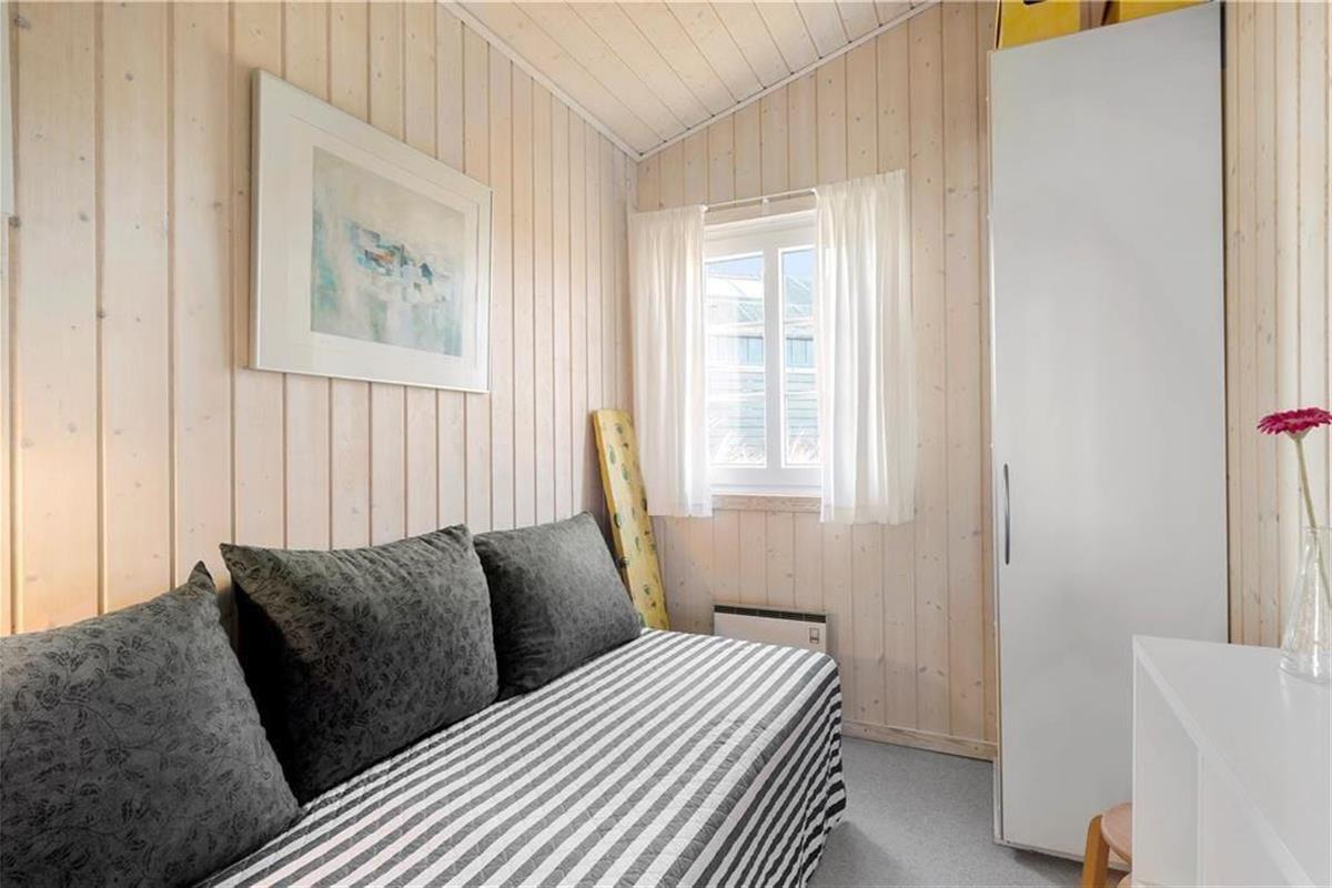 Das Ferienhaus befindet sich auf einem kupierten Grundstück, sodass der Wohnraum mit Meerblick erhöht im Bezug zu den anderen Räumlichkeiten liegt. Auch im Küchen- und Essbereich, der in Verlängerung des Wohnraumes steht, werden Sie mit einem attraktiven Ausblick verwöhnt. Während eines köstlichen Essens am Esstisch, nahe des Kaminofens, genießen Sie einen weiten Blick über die schöne Natur des Ferienhausgebietes. Beide Wohnbereiche bieten Ihnen dabei eine gemütliche und komfortable Möblierung, die zu wunderbar erholsamen und entspannten Stunden im Kreise Ihrer Lieben einlädt. In den drei vorhandenen Schlafräumen mit insgesamt fünf Schlafplätzen werden Sie sich schnell heimisch fühlen. Selbst das mit einer Fußbodenheizung, einer Waschmaschine und einer Duschnische versehene Badezimmer besticht mit einem ansprechenden Ambiente.