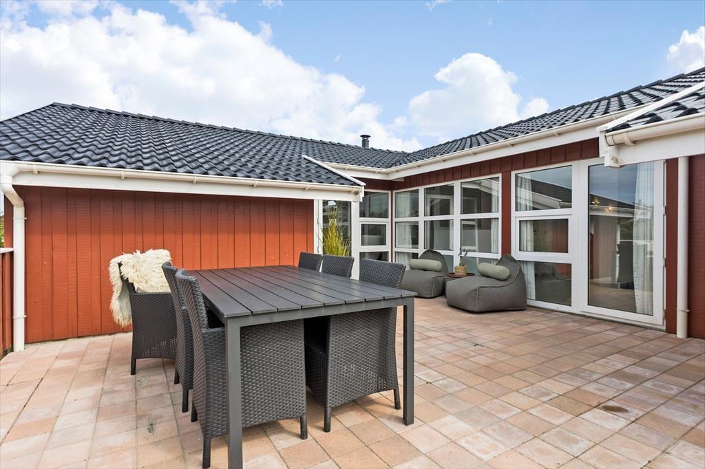 Dieses Haus verfügt über ein schönes und klassisches Äußeres mit roter Holzfassade und weißen Fensterrahmen. Dennoch hebt es sich von der Masse ab, indem es bedeutend größer ist als die üblichen Ferienhäuser. Im Hausinneren erwartet Sie eine Wohnfläche von 162 m², die viel Bewegungsfreiheit und Platz für bis zu acht Urlaubsgäste und zwei Haustiere bietet. Zum zentralen Sammelpunkt aller Mitreisenden wird sicherlich schnell der Wohnraum avancieren, bei dem es sich um einen ansprechenden und gepflegten Aufenthaltsbereich mit einem Kaminofen und der offen integrierten Küche handelt. Eine Schlafnische und zwei offene Schlafböden fügen sich ebenfalls harmonisch in den Aufenthaltsbereich ein, sodass Ihnen im Wohnraum gleich mehrere gemütliche Ecken zur Verfügung stehen, in die sich Groß und Klein mit einem guten Buch oder dem Smartphone zurückziehen können. Die Wohnfläche beinhaltet darüber hinaus vier gute Schlafzimmer und zwei Badezimmer, von denen eines im Wellnessbereich platziert ist. Im Wellnessbereich können Sie zahllose entspannte Stunden im Whirlpool und in der Sauna genießen. Für Aktivität und Fitness sorgt zudem der Swimmingpool, in dem Sie nicht nur mit den Kindern planschen, sondern auch eine Bahn nach der anderen schwimmen können.