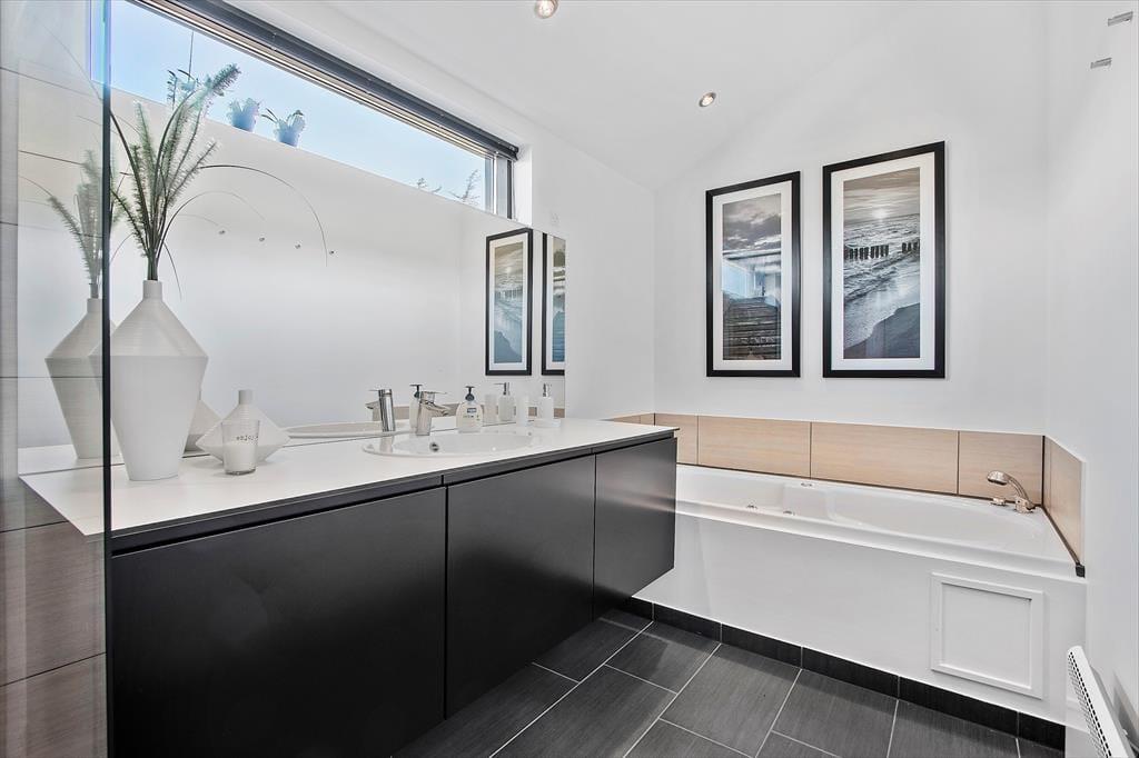 Dieses außergewöhnliche Qualitätshaus aus dem Jahre 2013 bietet eine moderne Inneneinrichtung mit stilvollem Wohnzimmer und mit Whirlpool in einem der Badezimmer. Eine außergewöhnlich schöne Terrassenlandschaft bietet mehrere Aufenthaltsmöglichkeiten und durch die Lage in der Nähe der Stadt Lønstrup ist es ein Leichtes, in die Küstenstadt oder an den Strand zu kommen.