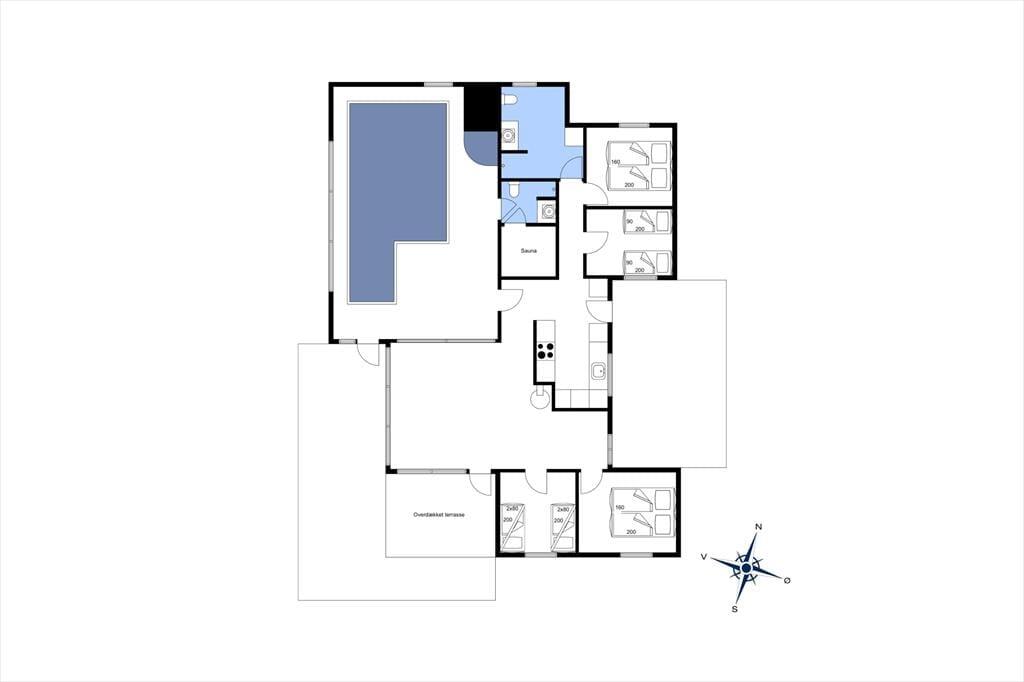 Die 148 m² umfassende Wohnfläche dieses Ferienhauses vermittelt Ihnen ein luxuriöses Wohngefühl – und zwar nicht zuletzt aufgrund des tollen Poolbereichs. Morgens können Sie den neuen Urlaubstag mit einem herrlichen Bad im Pool begrüßen. Abends lockt pure Entspannung in Form von erquickenden Saunagängen und erholsamen Bädern im warmen Whirlpool. Unglaublich entspannend geht es auch im angrenzenden Aufenthaltsraum zu, der sich offen aus der Küche und dem attraktiven Wohnraum zusammensetzt. Mitten in diesem hellen, hohen Raum ist der Kaminofen platziert, der an kühlen Abenden mit seinem behaglichen Knistern verzaubert. Für Unterhaltung sorgt derweil unter anderem der Fernseher mit Chromecast und einem DVD-Player. Das moderne Interieur verleiht Ihren gemütlichen Stunden in geselliger Runde einen attraktiven und komfortablen Rahmen. Zudem sorgen die großen Fensterpartien dafür, dass Sie einen freien Blick auf die schöne Natur Lønstrups genießen. Die gut aufgeteilte Wohnfläche beherbergt darüber hinaus auch zwei Badezimmer und vier Schlafräume mit insgesamt zehn Schlafplätzen. Oben, unter der Decke, lockt zudem ein eingezogener Schlafboden, der sich sicherlich bei Ihren Kindern großer Beliebtheit erfreuen wird und ihnen, ein wenig abseits der Erwachsenen, einen schönen Platz zum Spielen und Kuscheln bietet.