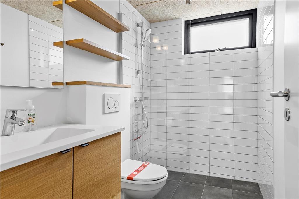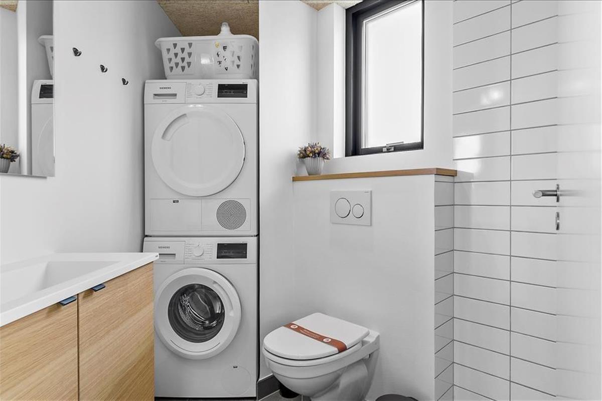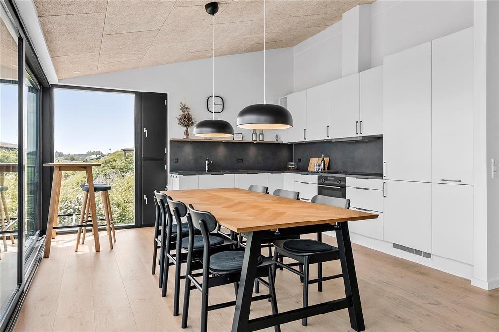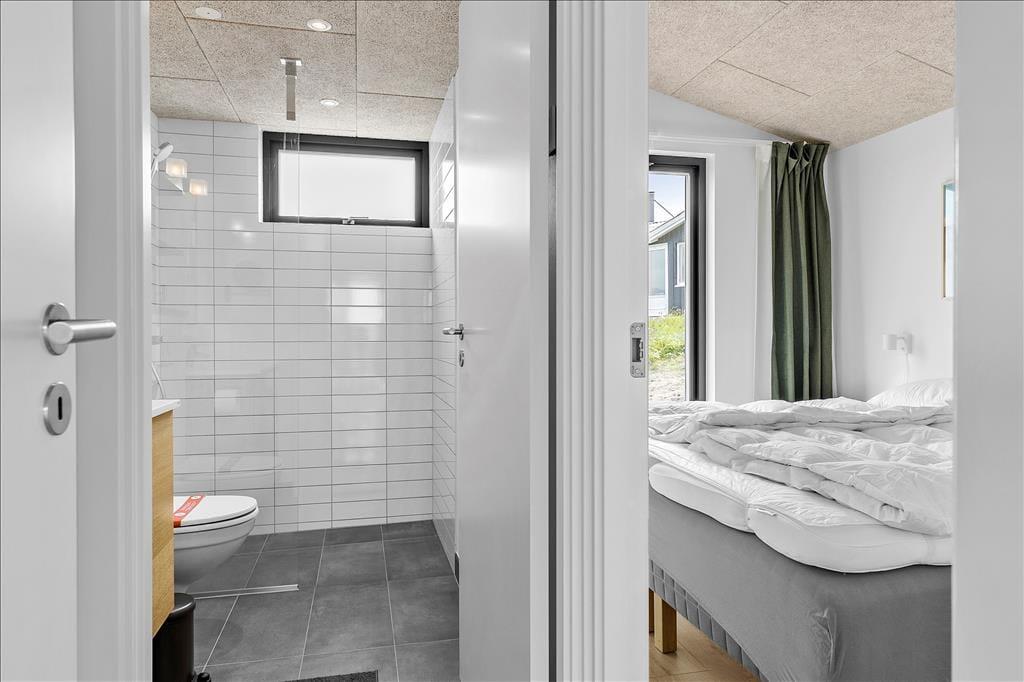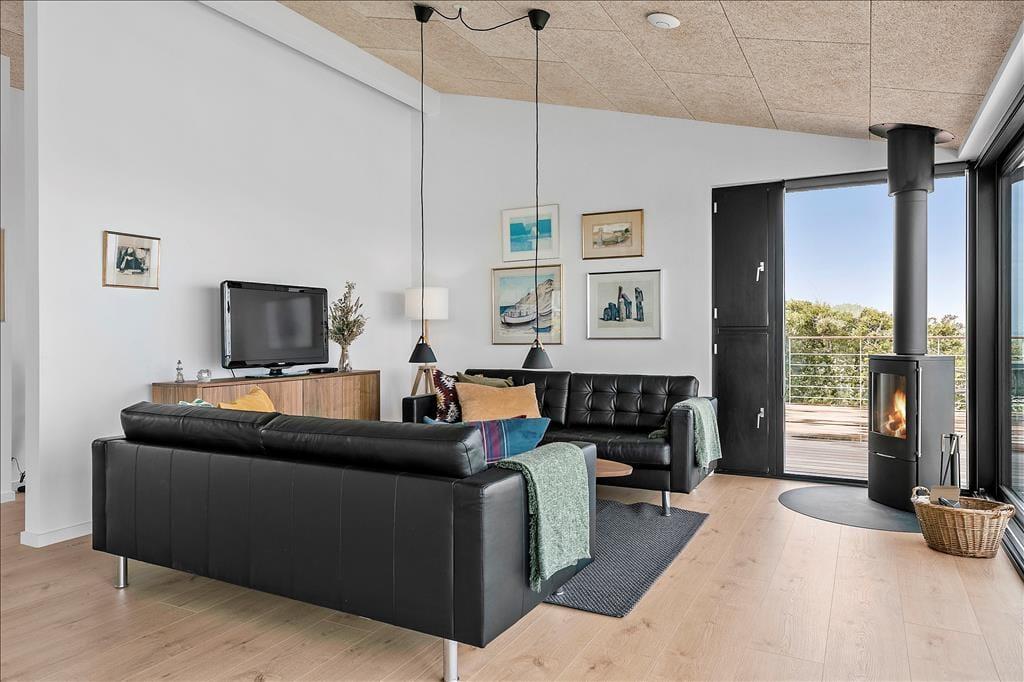 Direkt am Hauseingang befindet sich eines von drei Badezimmern, ausgestattet mit einer Waschmaschine und einem Trockner. Die große Glasfassade des Aufenthaltsraumes verleiht der Aussicht einen eleganten Rahmen. Genießen Sie Ihre morgendliche Tasse Kaffee am Bartisch mit Blick in die Natur. Öffnen Sie die großen Schiebetüren der Glasfassade zum Balkon und genießen Sie die Aussicht auf die Nordsee mit ihren spektakulären Sonnenuntergängen. Bereiten Sie Ihre Mahlzeiten in der gut ausgestatteten Küche zu, die in den großen Wohnraum integriert ist, und servieren Sie anschließend das Essen am großen Esstisch. Ausgestattet mit einer Fußbodenheizung bietet dieses Haus besten Komfort. Das Masterschlafzimmer besticht Sie einem eigenen Badezimmer, sowie einer Klimaanlage für die heißen Tage. Die Fenster der Schlafzimmers sind ausgestattet mit Insektenschutzgittern, so dass Sie des Nachts bei geöffnetem Fenster dem Meeresrauschen lauschen können. Im Nebengebäude mit eigenem Badezimmer schlafen Sie in einem sogenannten "Elevationsseng", einem Bett, welches die Möglichkeit bietet das Kopf- und Fußende hochzufahren, - selbstverständlich mit Aussicht. Dies ist der perfekte Ort für gemütliche Nachmittage mit einem guten Buch.
