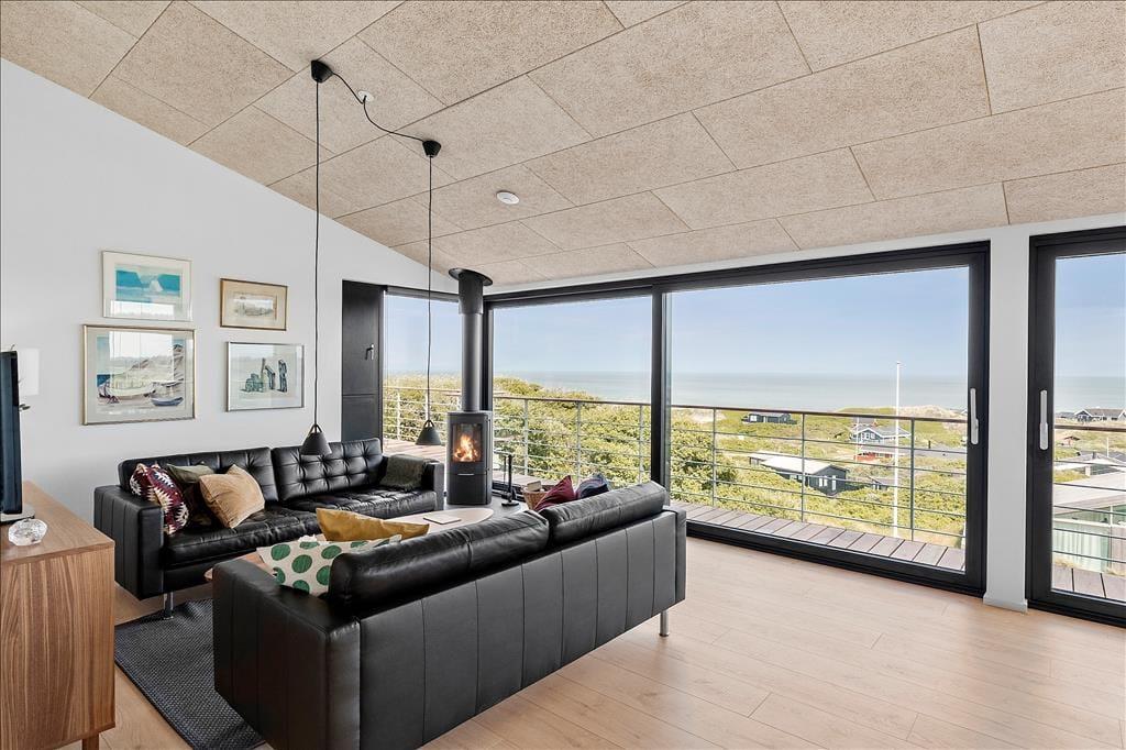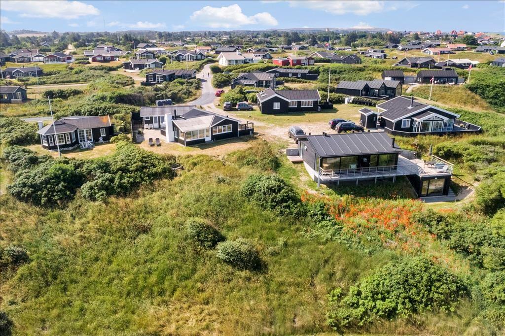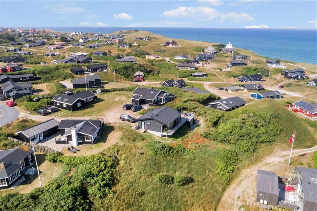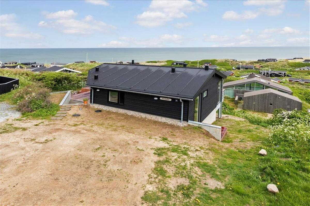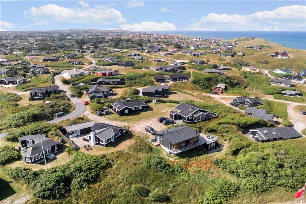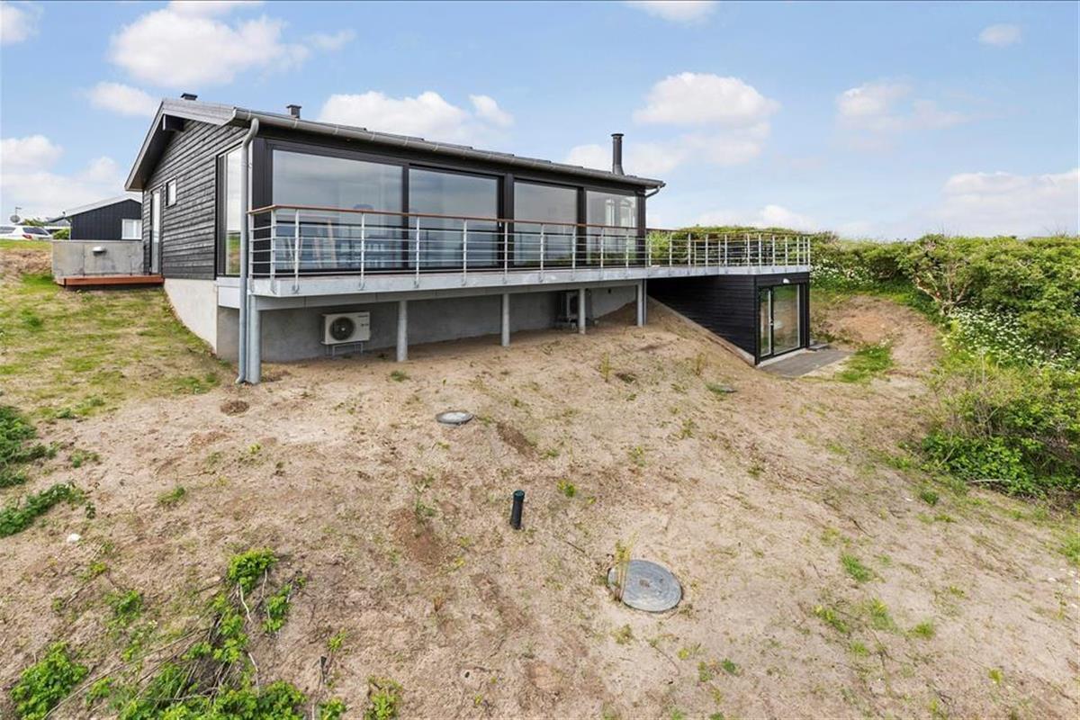 Bei der Ankunft werden Sie feststellen, dass dieses moderne Ferienhaus in die hohe Düne integriert ist, auf der es liegt. Wenn Sie anschließend auf der großen Terrasse mit verschiedenen Ebenen und Möglichkeiten stehen, werden Sie die außergewöhnliche Aussicht auf die Nordsee entdecken. Sie befinden sich 23 Meter über dem Meer und sind nur 200 Meter vom Strand entfernt. Dadurch genießen Sie nicht nur den Blick auf die Nordsee, sondern auch über das Ferienhausgebiet und die gesamte Küste bis hin zum 16 km entfernten Hafenort Hirthals. Das Haus verwöhnt mit einer abgeschiedenen Lage im Ferienhausgebiet "Harerenden". Hier wohnen Sie angenehm geschützt vor Blicken und sehr schön durch die Düne abgeschirmt vom meist vorherrschenden Westwind.