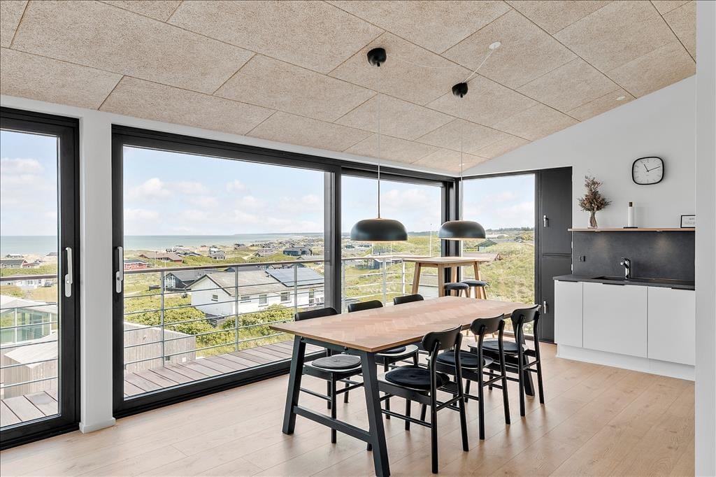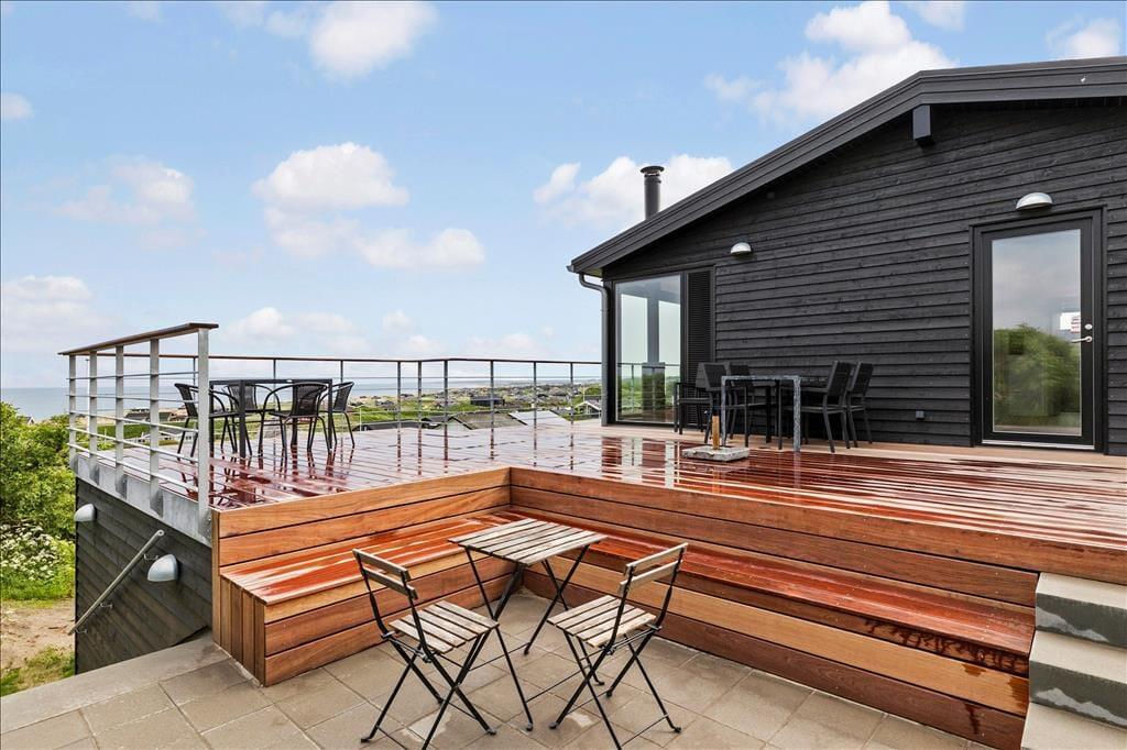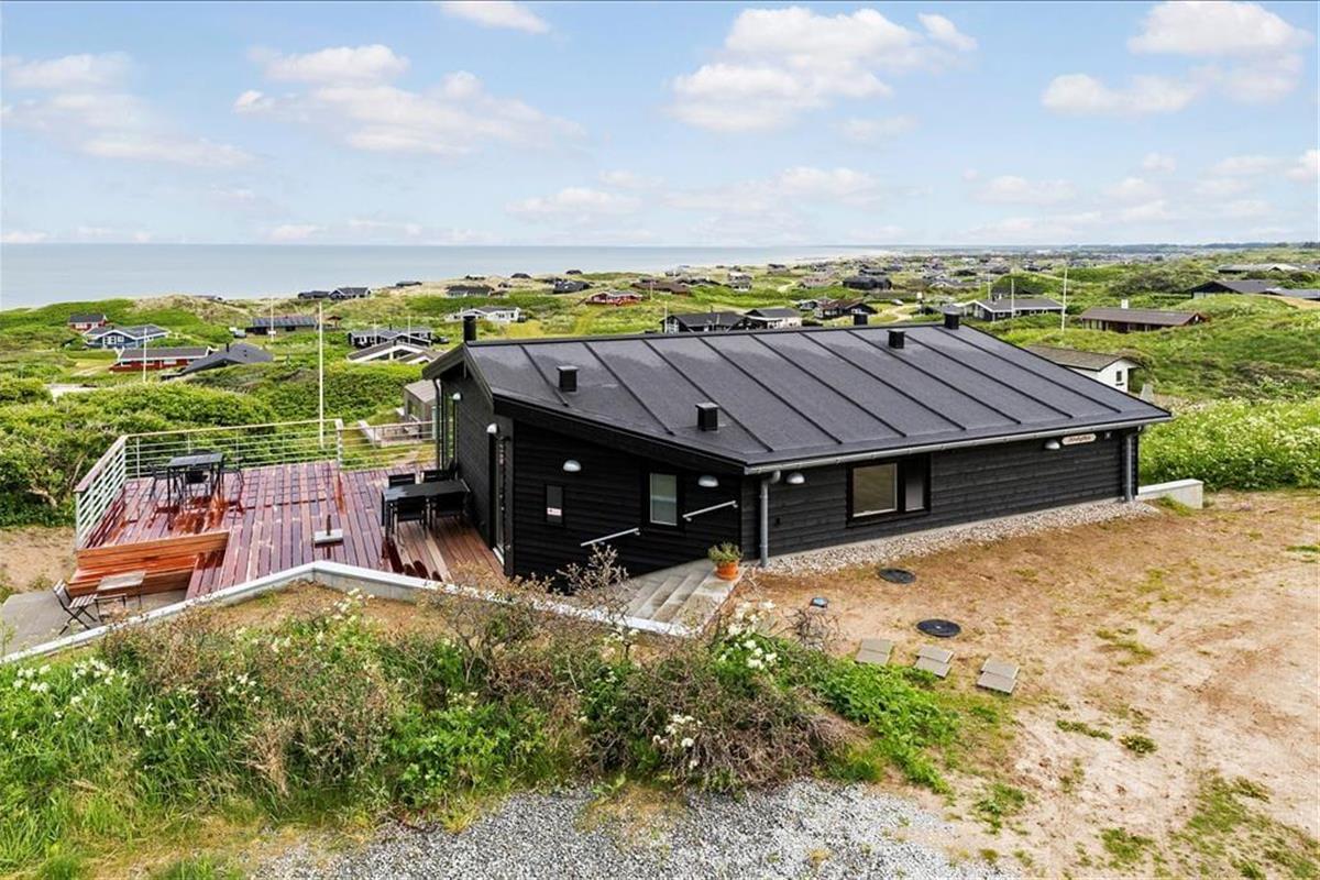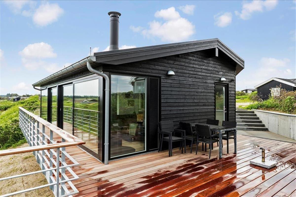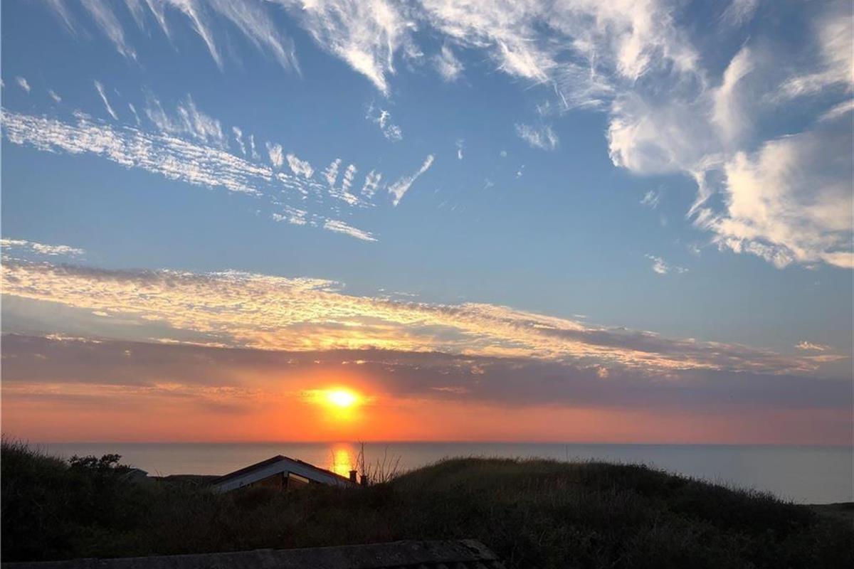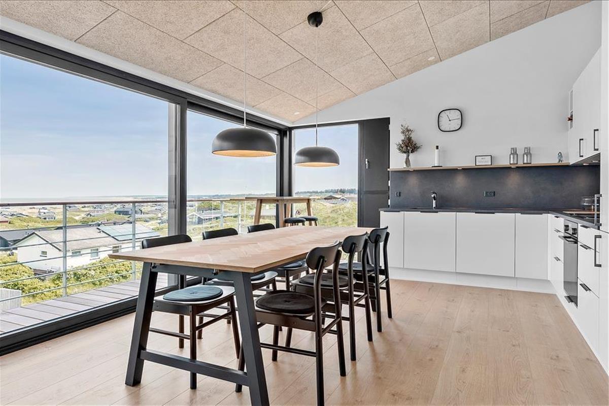 Bei der Ankunft werden Sie feststellen, dass dieses moderne Ferienhaus in die hohe Düne integriert ist, auf der es liegt. Wenn Sie anschließend auf der großen Terrasse mit verschiedenen Ebenen und Möglichkeiten stehen, werden Sie die außergewöhnliche Aussicht auf die Nordsee entdecken. Sie befinden sich 23 Meter über dem Meer und sind nur 200 Meter vom Strand entfernt. Dadurch genießen Sie nicht nur den Blick auf die Nordsee, sondern auch über das Ferienhausgebiet und die gesamte Küste bis hin zum 16 km entfernten Hafenort Hirthals. Das Haus verwöhnt mit einer abgeschiedenen Lage im Ferienhausgebiet "Harerenden". Hier wohnen Sie angenehm geschützt vor Blicken und sehr schön durch die Düne abgeschirmt vom meist vorherrschenden Westwind.