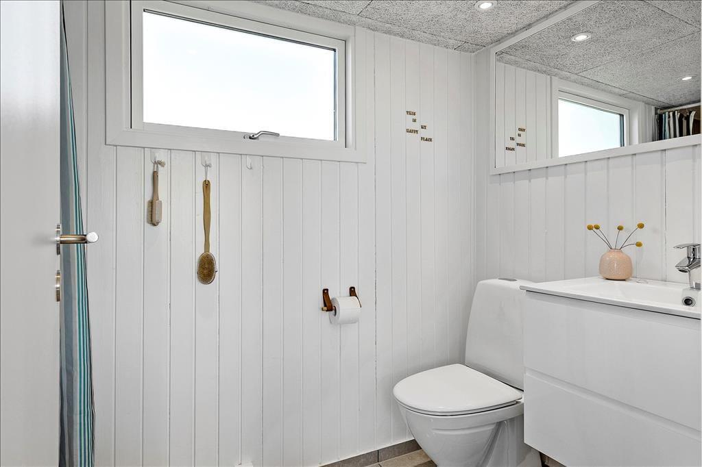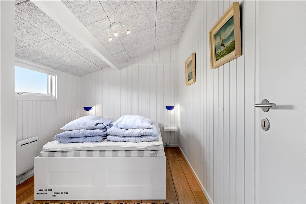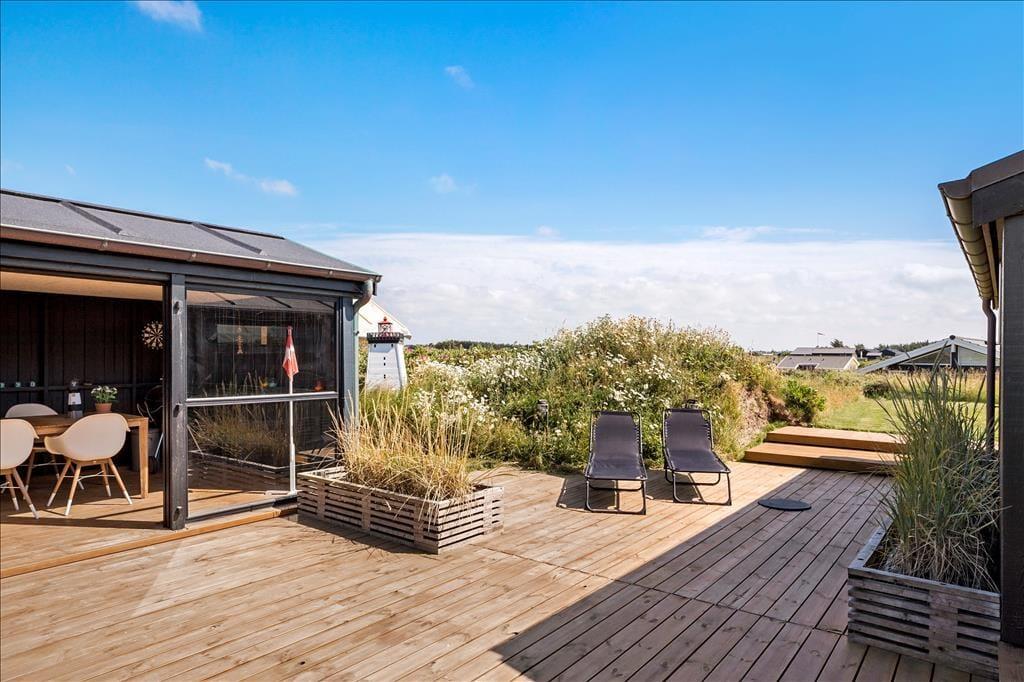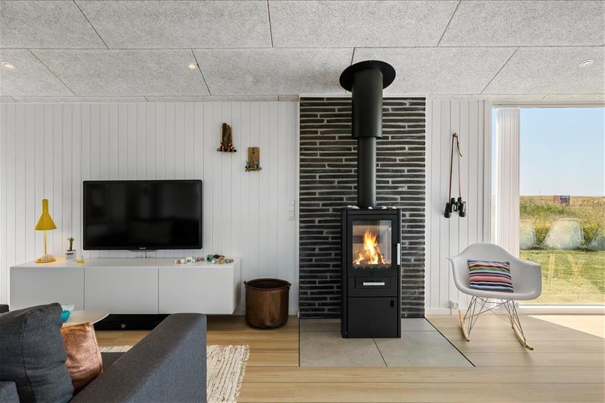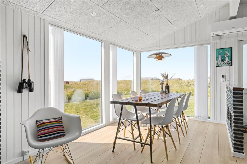 Im Zuge der Renovierung im Jahr 2019 wurde offensichtlich kräftig angepackt. Die Einrichtung ist ausgesprochen schön und geschmackvoll - jedoch in gedämpfter Art und Weise, sodass die Räume auch jetzt, nach der Renovierung, noch der absolute Inbegriff von Gemütlichkeit und echtem Ferienhauscharme sind. Alle Räumlichkeiten präsentieren sich Ihnen schön und ansprechend. Die Ästhetik des Badezimmers und der beiden Schlafräume ist nicht weniger beeindruckend als die des großen Aufenthaltsraumes. Der Aufenthaltsraum, der die Küche und den Wohnraum in sich vereint, besticht mit einem Tageslichteinfall aus drei Himmelsrichtungen und einer imposanten Aussicht: Die großen Panoramafenster beim Esstisch sind direkt zum Meer und zur Küstenlinie ausgerichtet, die lediglich 150 Meter vom Haus entfernt liegen. Wenn Sie es sich nach einem guten Essen in der Sofaabteilung gemütlich machen, genießen Sie durch das schmale, nach Süden ausgerichtete Fenster einen schönen Blick auf den berühmten Leuchtturm Rubjerg Knude Fyr.