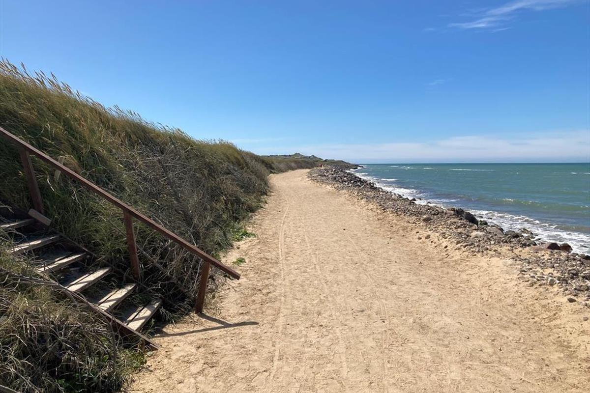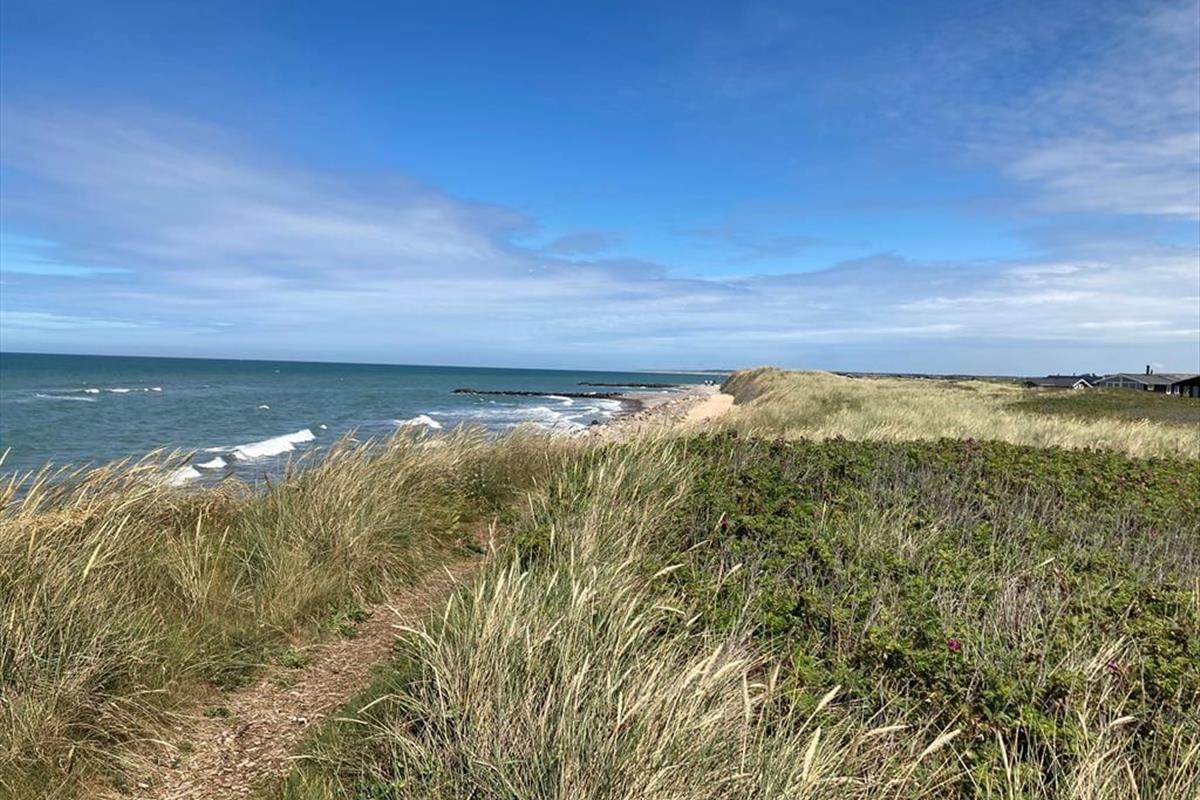 Von Ihrem ungestörten Naturgrundstück gelangen Sie schnell an die Nordsee. Hierfür folgen Sie einfach einem kleinen Pfad, der direkt von Ihrem Grundstück hinunter an den Strand führt. Die kurze Entfernung bewältigen Sie innerhalb weniger Minuten, sodass spontanen Bädern in den wogenden Wellen nichts entgegensteht. Zudem bildet die Lage des Hauses einen hervorragenden Ausgangspunkt für Spaziergänge entlang der Küste. Nach drei Kilometern erreichen Sie beispielsweise den Küstenort Lønstrup, in dem Sie sich unter anderem in einem der guten Cafés und Restaurants kulinarisch verwöhnen lassen können. Zu Fuß und per Fahrrad erreichen Sie außerdem das populäre Skallerup Seaside Resort, das mit seinem tollen Badeland, dem guten Wellnesscenter, Bowlingbahnen und einem breit gefächerten Aktivitätsangebot für Groß und Klein zu überzeugen weiß.