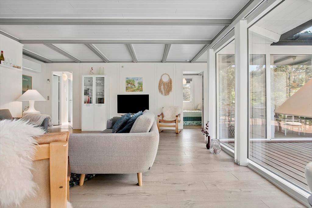 Das schwarz gestrichene Holzhaus ruht bereits seit rund 50 Jahren inmitten der ansprechenden Küstenlandschaft. Nach einer umfassenden Renovierung präsentiert es sich ausgesprochen schön und einladend. Alles, von den Fenstern, Türen und der Vertäfelung der Innenwände bis hin zu den Fußböden wurde erneuert. Das gut eingerichtete Badezimmer ist ebenfalls neu. In den übrigen Räumen, also den drei Schlafzimmern und dem Wohnraum samt offen integrierter Küche, erwartet Sie eine stimmungsvolle Möblierung, die sich gut in das helle Ambiente einfügt. Der schöne Tageslichteinfall untermalt die schöne Atmosphäre im Wohnbereich, der mit Terrassentüren und großen Fenstern gen Süden und Westen überzeugt. Der offene Kamin lädt zu gemütlichen Stunden im Kreise Ihrer Lieben ein. Für Unterhaltung und Abwechslung sorgt ein Flachbild-TV mit Chromecast. Eine schnelle WiFi-Verbindung ermöglicht Ihnen das Streamen Surfen im Internet.