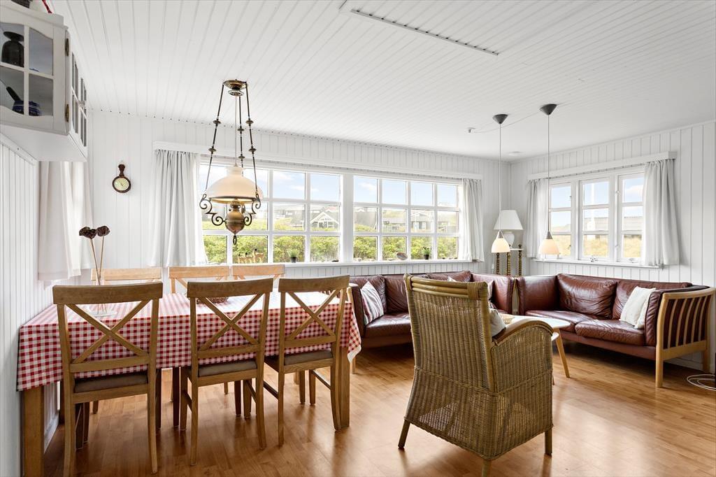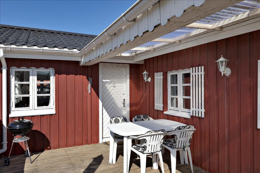 Das Ferienhaus liegt bereits seit dem Jahr 1964 in der attraktiven Küstenlandschaft des gefragten Gebiets Harerenden. Bis heute verzückt es mit seiner klassischen, roten Holzfassade und den reizenden, weißen Sprossenfenstern. Auch im Inneren erwartet Sie viel klassischer Ferienhauscharme. Die schlichte, funktionelle Einrichtung wurde im Laufe der Zeit modernisiert, sodass Sie sich heute auch auf bequeme Annehmlichkeiten, wie beispielsweise eine Wärmepumpe mit Kühlfunktion und einen Flachbild-TV freuen dürfen. Mit einer Wohnfläche von 45 m² zählt dieses Mietobjekt sicherlich nicht zu den größten seiner Art. Wer braucht allerdings noch mehr Platz, wenn das Urlaubsziel im Lesen spannender Bücher, im Genießen köstlicher Mahlzeiten und im Verbringen von unglaublich viel wertvoller, gemeinsamer Zeit liegt? All diese Dinge vollziehen sich im gemütlichen Wohnraum, der auch den Ess- und den offenen Küchenbereich in sich vereint. Im Wohnraum werden Sie darüber hinaus auch mit einem schönen Blick auf das Meer verwöhnt. Ein kleines Badezimmer und zwei Schlafräume, die in Verlängerung zueinander liegen, sind ebenfalls vorhanden.