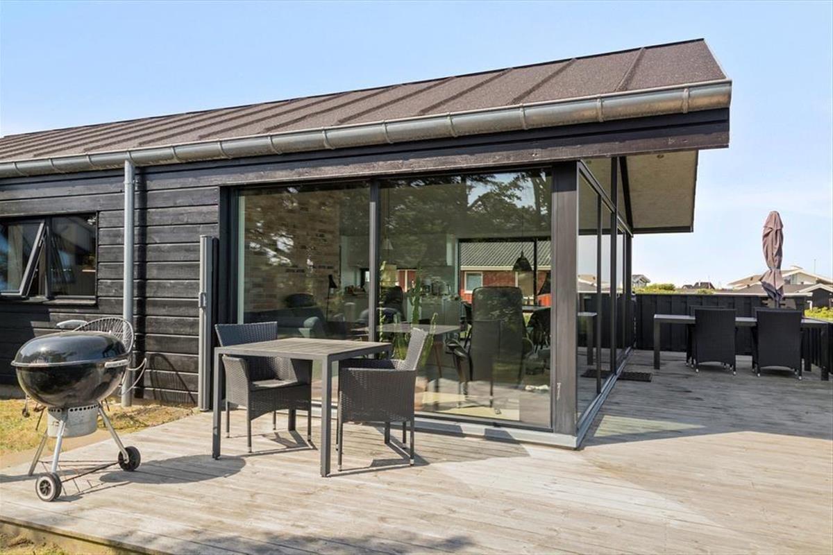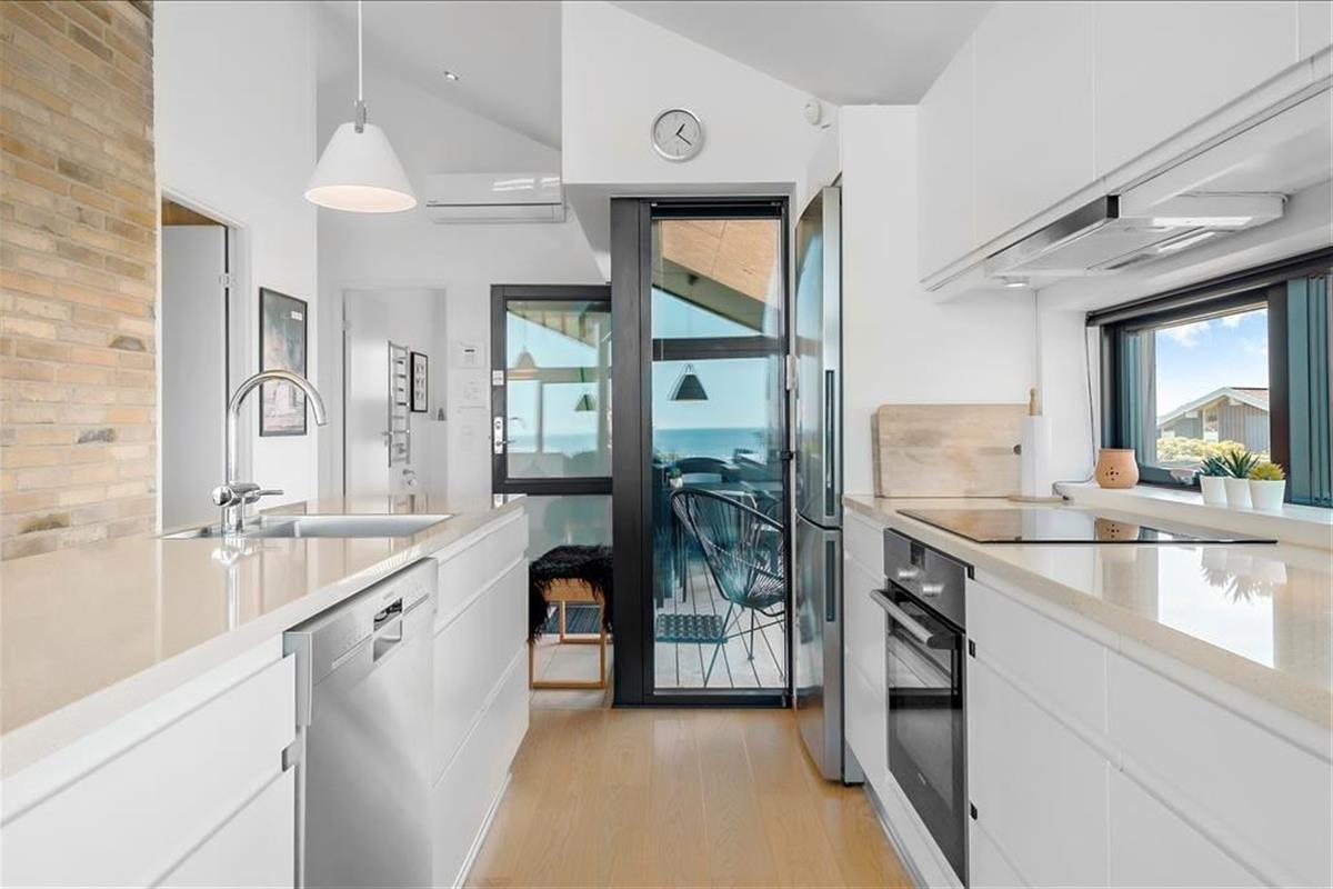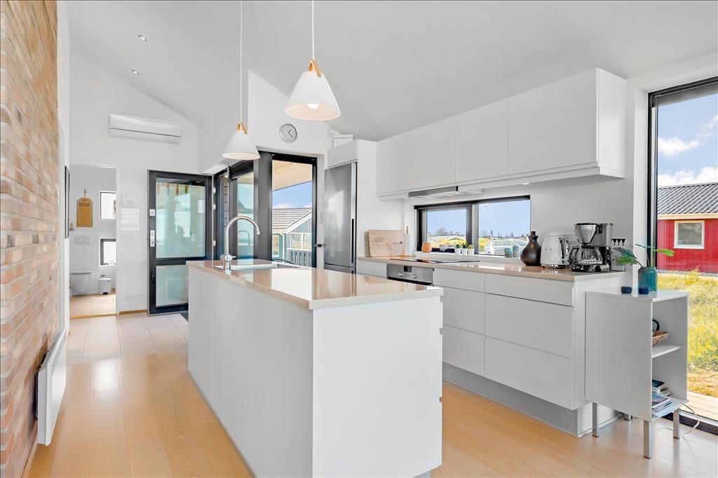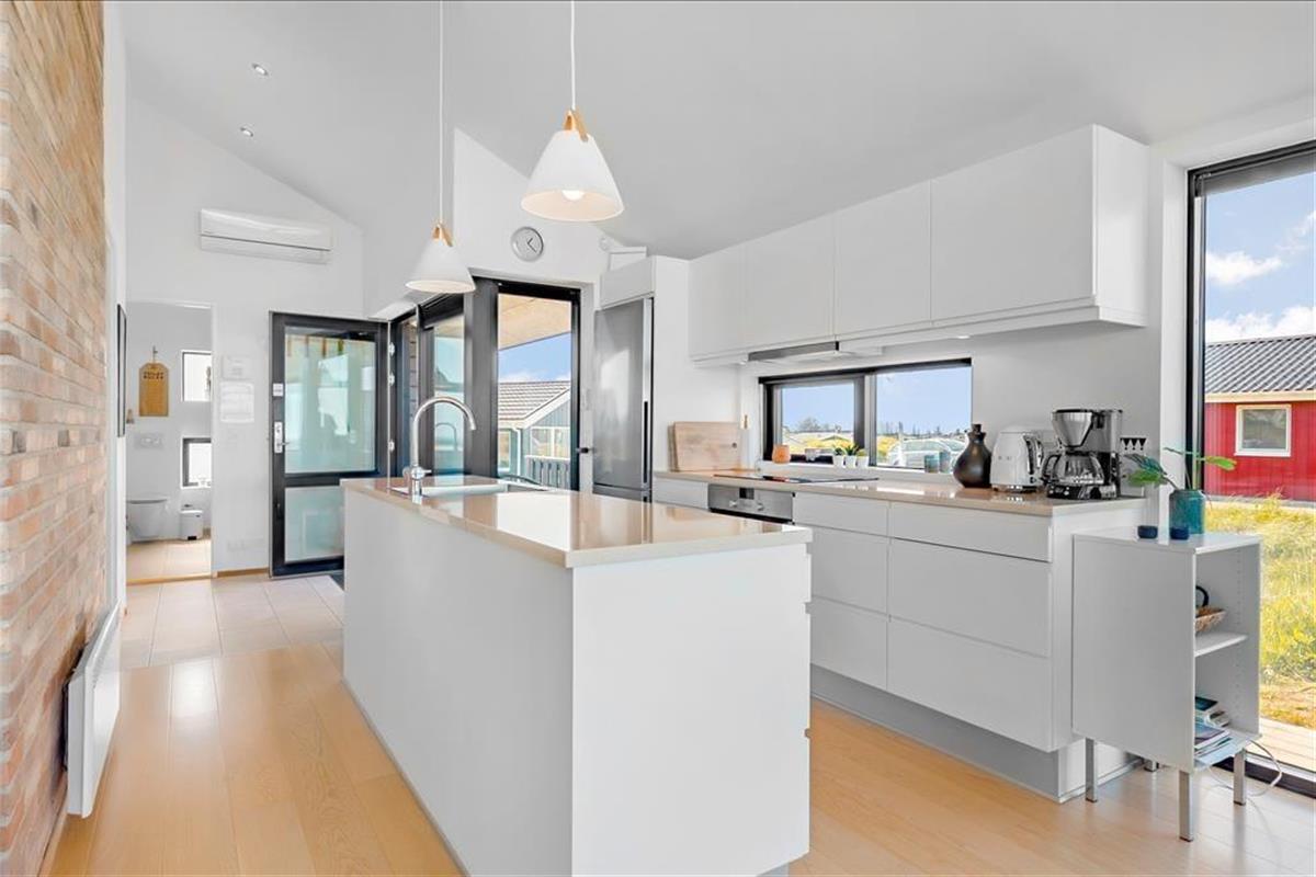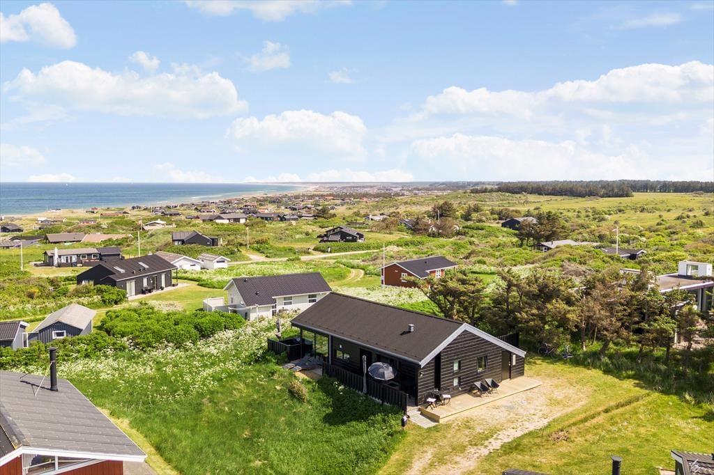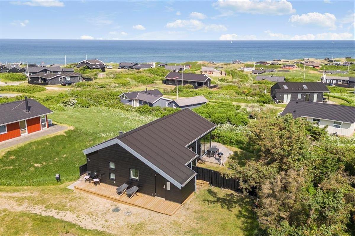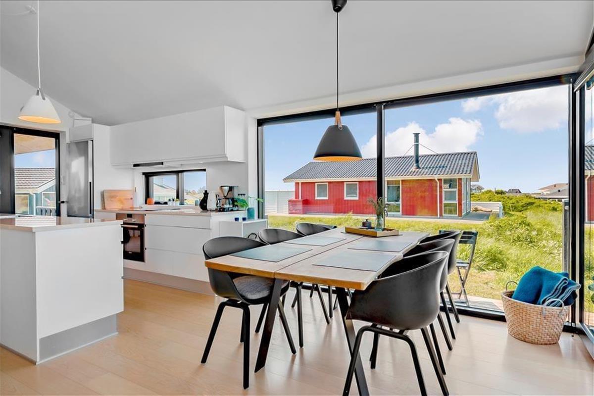 Das Urlaubsdomizil thront erhöht in der Landschaft, wodurch Sie auch in den Genuss des fantastischen Meerblicks kommen. Der herrliche Ausblick wurde selbstverständlich vom Architekten berücksichtigt und bestmöglich in Szene gesetzt. Der Aufenthaltsbereich wurde daher mit Panoramafenstern versehen, die einen atemberaubenden Blick über die gesamte, wunderschöne Küstenlinie gewähren - ja, bei klarem Wetter ganz vom Leuchtturm von Hirtshals bis hin zum berühmten Leuchtturm Rubjerg Knude Fyr. Die großen Glaspartien sind allerdings nicht die einzigen tollen Details, mit denen dieses vom Architekten entworfene Sonne-Haus aus dem Jahr 2017 zu überzeugen weiß. Insgesamt besticht das Mietobjekt mit einer wunderbar hellen und schönen Einrichtung und einer wohldurchdachten Raumaufteilung für bis zu sechs Urlaubsgäste. Der Aufenthaltsbereich setzt sich offen aus dem wunderschönen Wohnraum und der modernen, hellen Küche zusammen. Ein ansprechendes Badezimmer und drei schöne Schlafzimmer stehen Ihnen ebenfalls zur Verfügung.