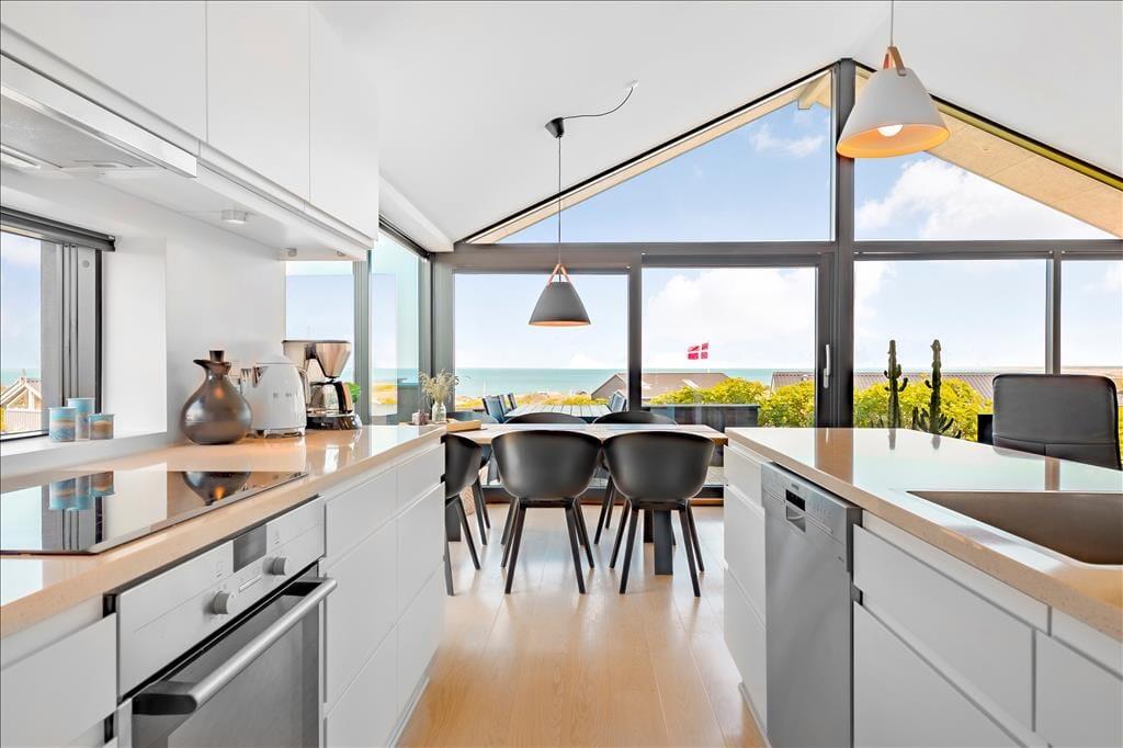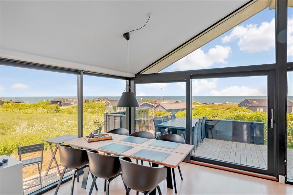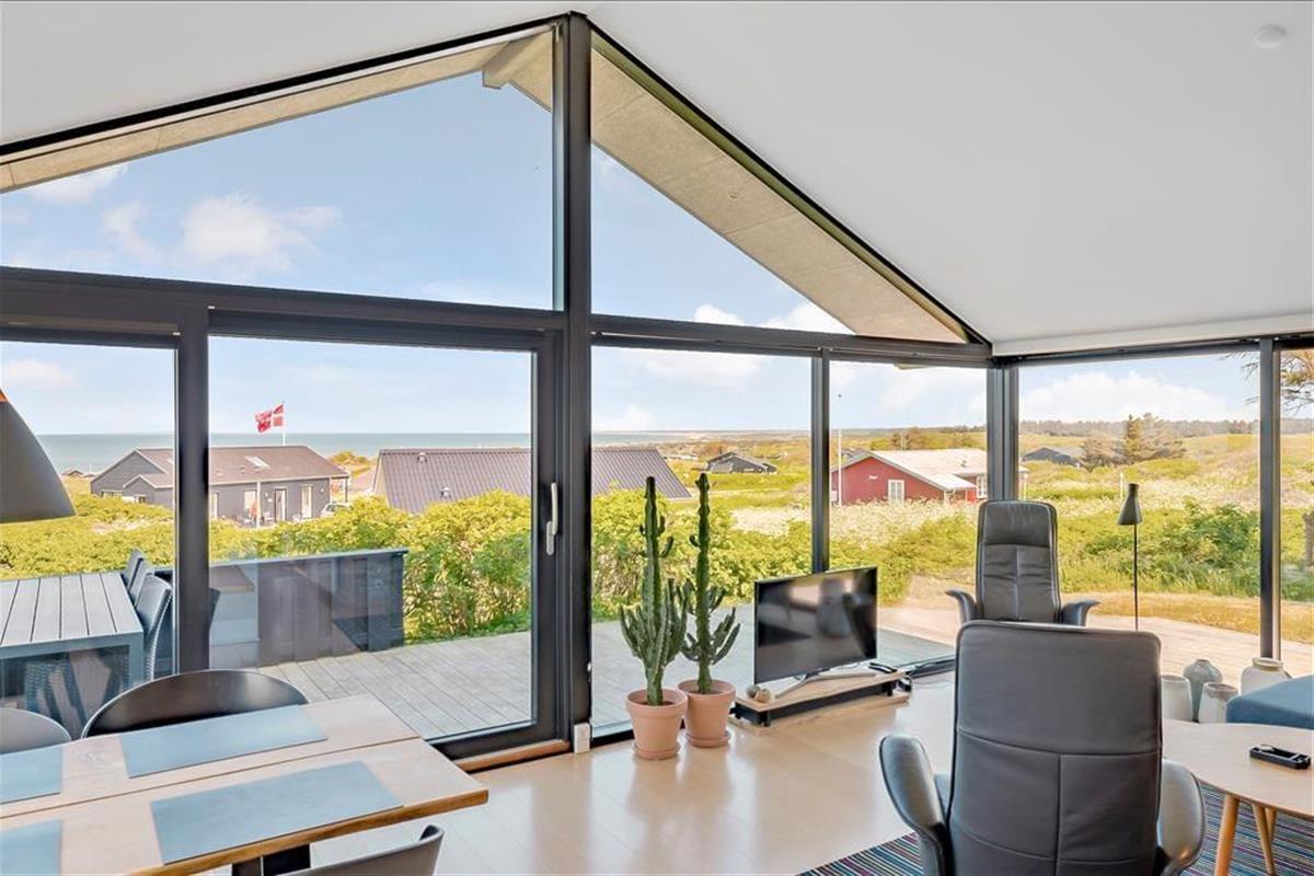 Dieses moderne Ferienhaus besticht mit seiner ansprechenden Architektur und seiner hervorragenden Einrichtung - dennoch wird es wahrscheinlich in erster Linie die beeindruckende Panoramaaussicht über die Nordsee und die Küstenlinie Lønstrups sein, die bei Ihnen für Begeisterung sorgt.